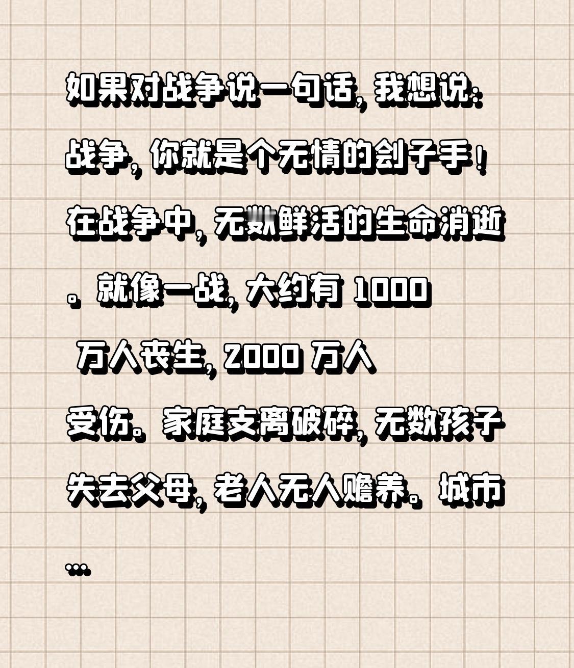 如果对战争说一句话,我想说:战争,你就是个无情的刽子手!