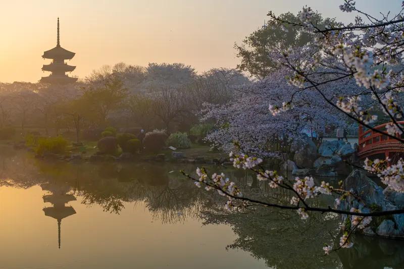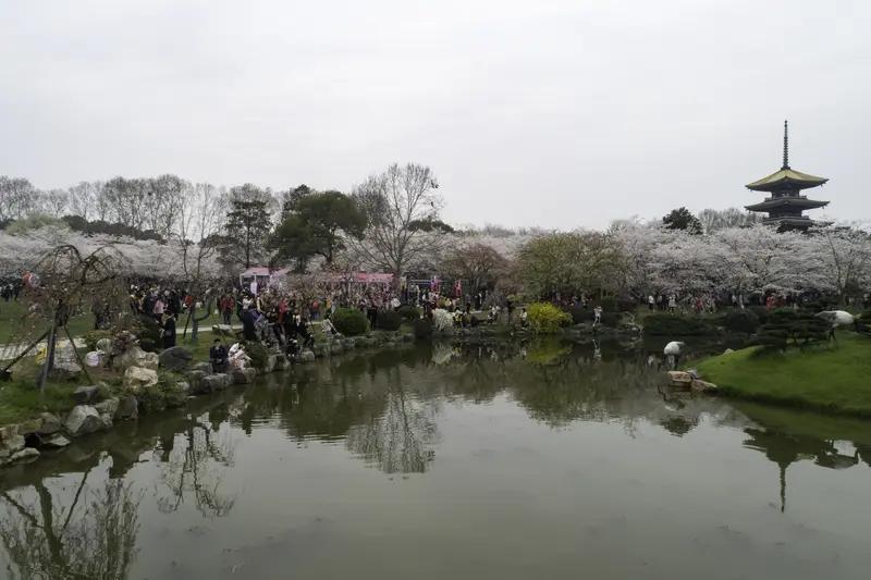 3月下旬,武汉东湖樱花园超八成樱花盛放。这里占地数百亩,数十种中樱品种争艳,粉白、淡粉、柔白交织,远看如云似霞。微风拂过,花瓣飘落如樱花雨。园内曲桥回廊、湖光水色与樱花相映,有东方古典意境,花期到4月上旬。