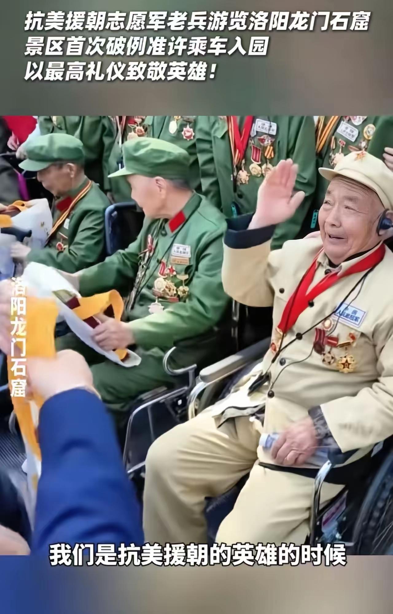 龙门石窟没有固守冰冷的规则,而是选择给这些民族功臣一份专属的礼遇,这样的破例,本质上不是破坏规则,而是给规则赋予了应有的温度。游客们看清车上人员身份后,没有任何犹豫,纷纷自觉停下脚步,主动让出最宽敞的通道,全程安静有序,没有喧哗拥挤,不少游客还面带敬意,默默注视着老兵们缓缓前行,用最朴素的方式表达着内心的敬佩。