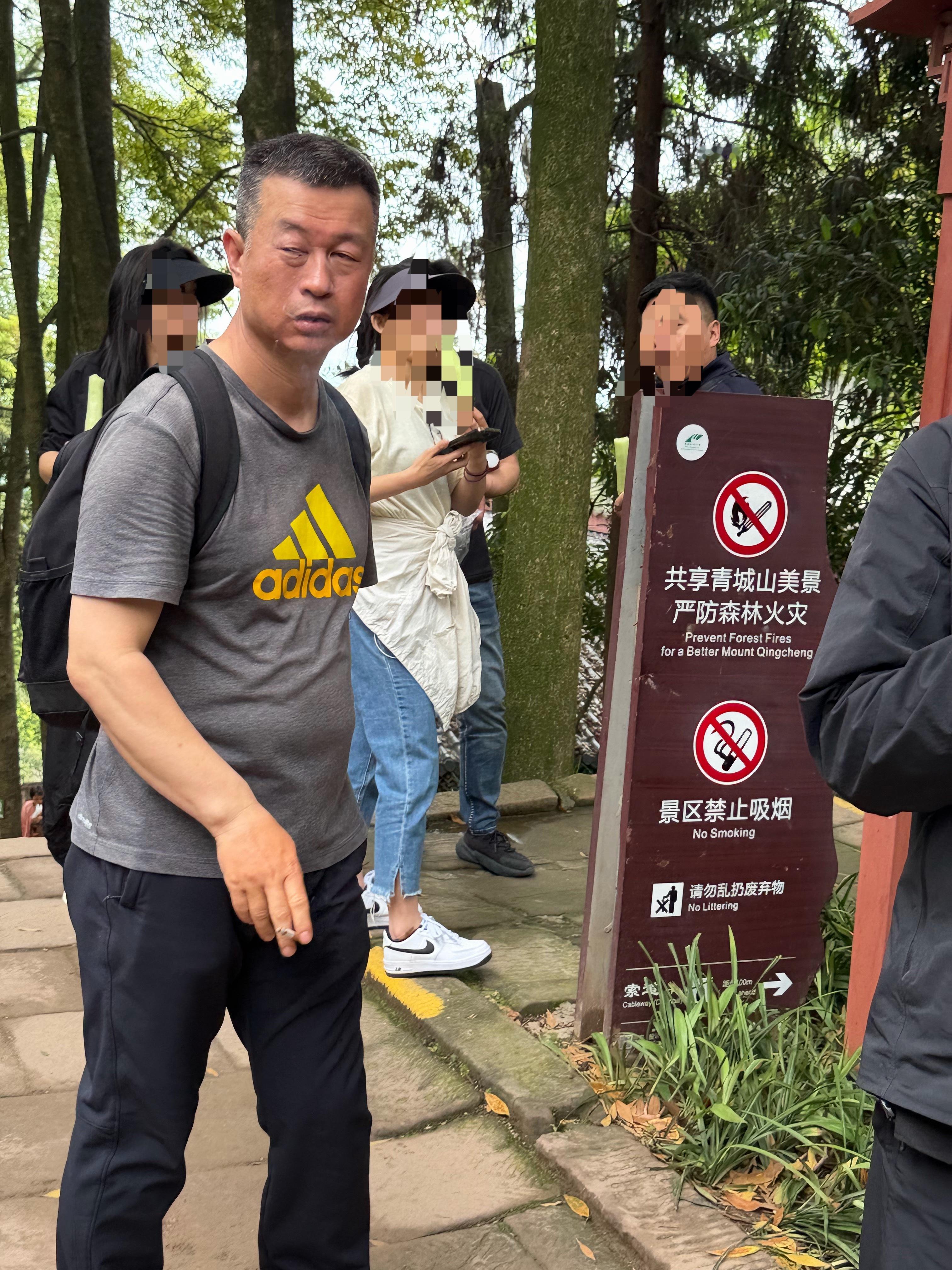 大哥山里旁若无人的抽烟,一旦引起山火直接牢底座穿 都江堰·青城山景区