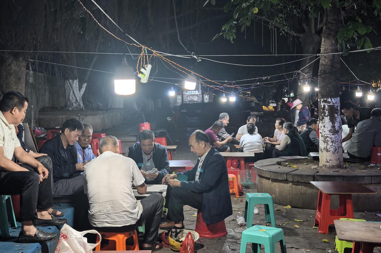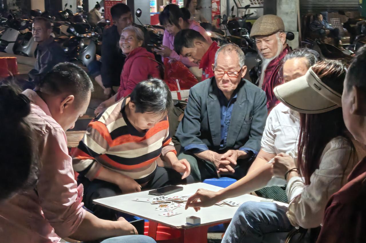 钦州街头夜晚的老年牌局|钦州的夜晚,从来不止霓虹和车流。老榕树下牵起的电线挂着灯,塑料凳围起的牌桌亮着光。一局牌,几句闲话,就是老钦州人最踏实的夜生活。不赶时间,不问输赢,只和晚风一起,慢慢悠悠,把日子过成松弛的模样。
