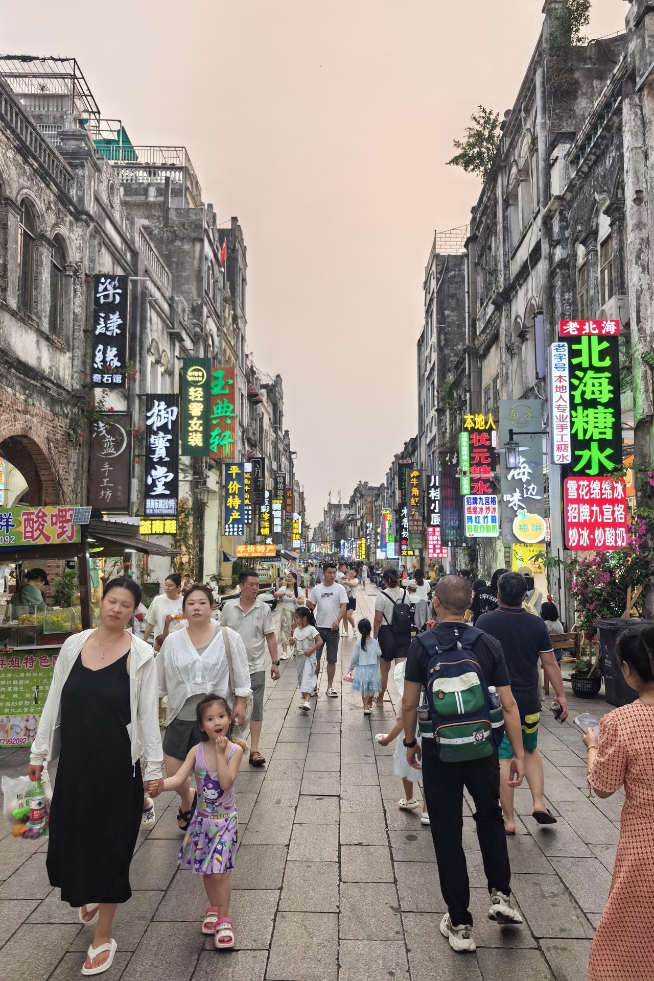 北海老街,是一座活着的骑楼博物馆|街面上骑楼林立,商铺云集,从清末的通商口岸,到如今的烟火老街,百年时光在这里流转。石板路上印着岁月的痕迹,斑驳的墙面上藏着历史的故事,红灯笼下是往来的游客,海风里是不变的烟火。在这里,能触摸到北海的过去,也能感受到当下的热闹。走在老街上,仿佛穿越了时光,一边是百年的沧桑,一边是鲜活的日常。