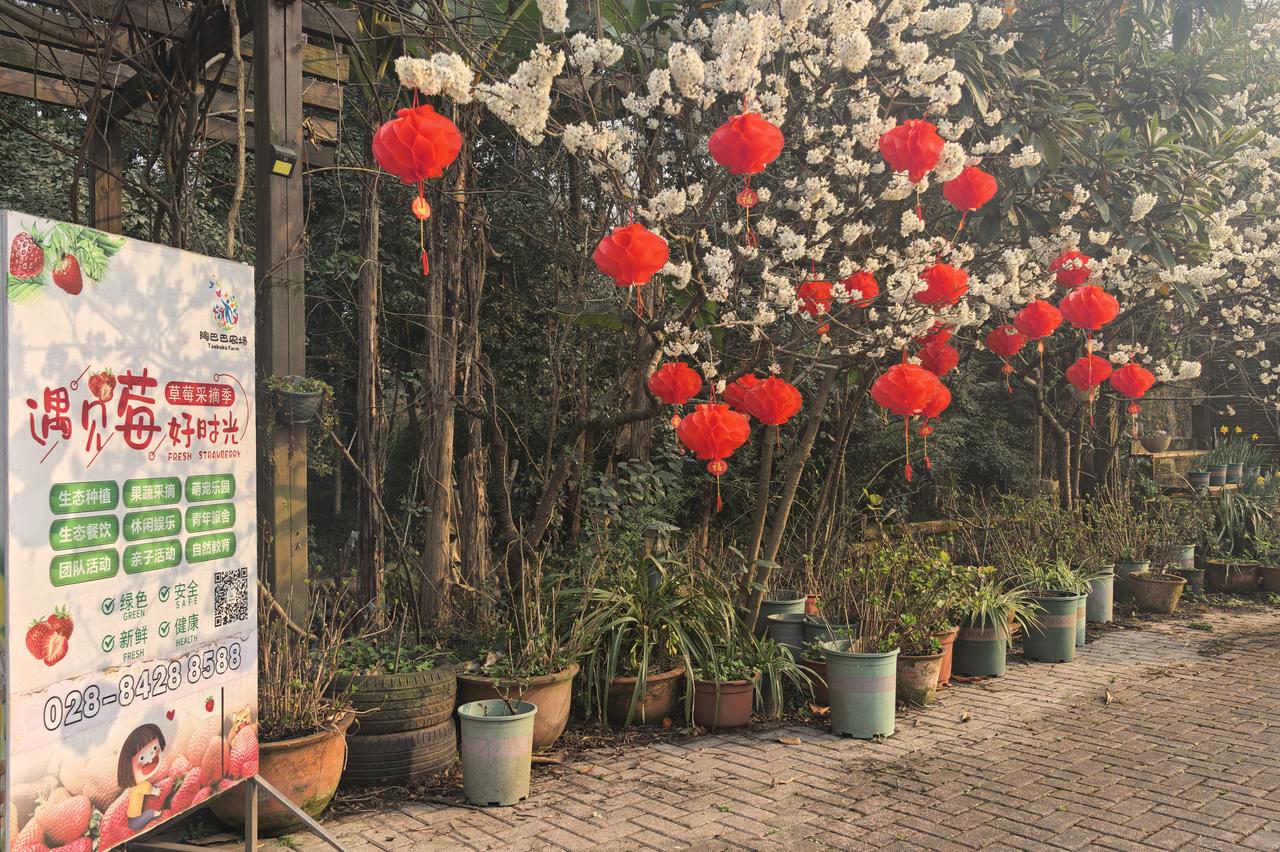 在陶巴巴邂逅川西最早的春天|红灯笼串起丙午马年新春的暖意,白梅与早樱在川西的风里次第舒展。砖径旁的三色堇与报春花,把春日的鲜活铺进庭院;秋千上的笑声,撞碎了檐下的光影。这里是街子古镇陶巴巴农场,既是“遇见莓好时光”的田园,也是“中医药研学基地”的课堂。当红灯笼映着素洁的花影,当乡野的风裹着新春的香,我们在草木与烟火里,接住了一整个早春的温柔与热闹。