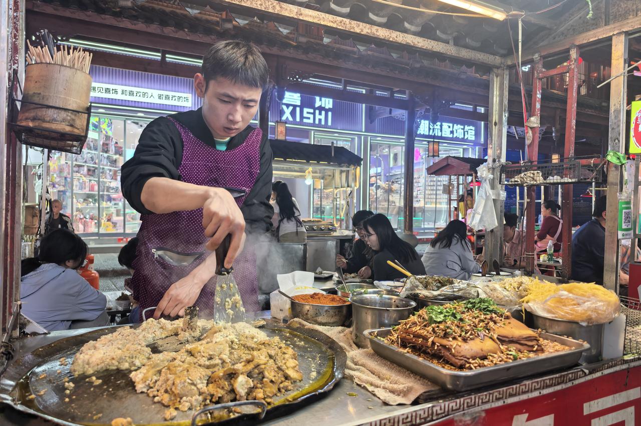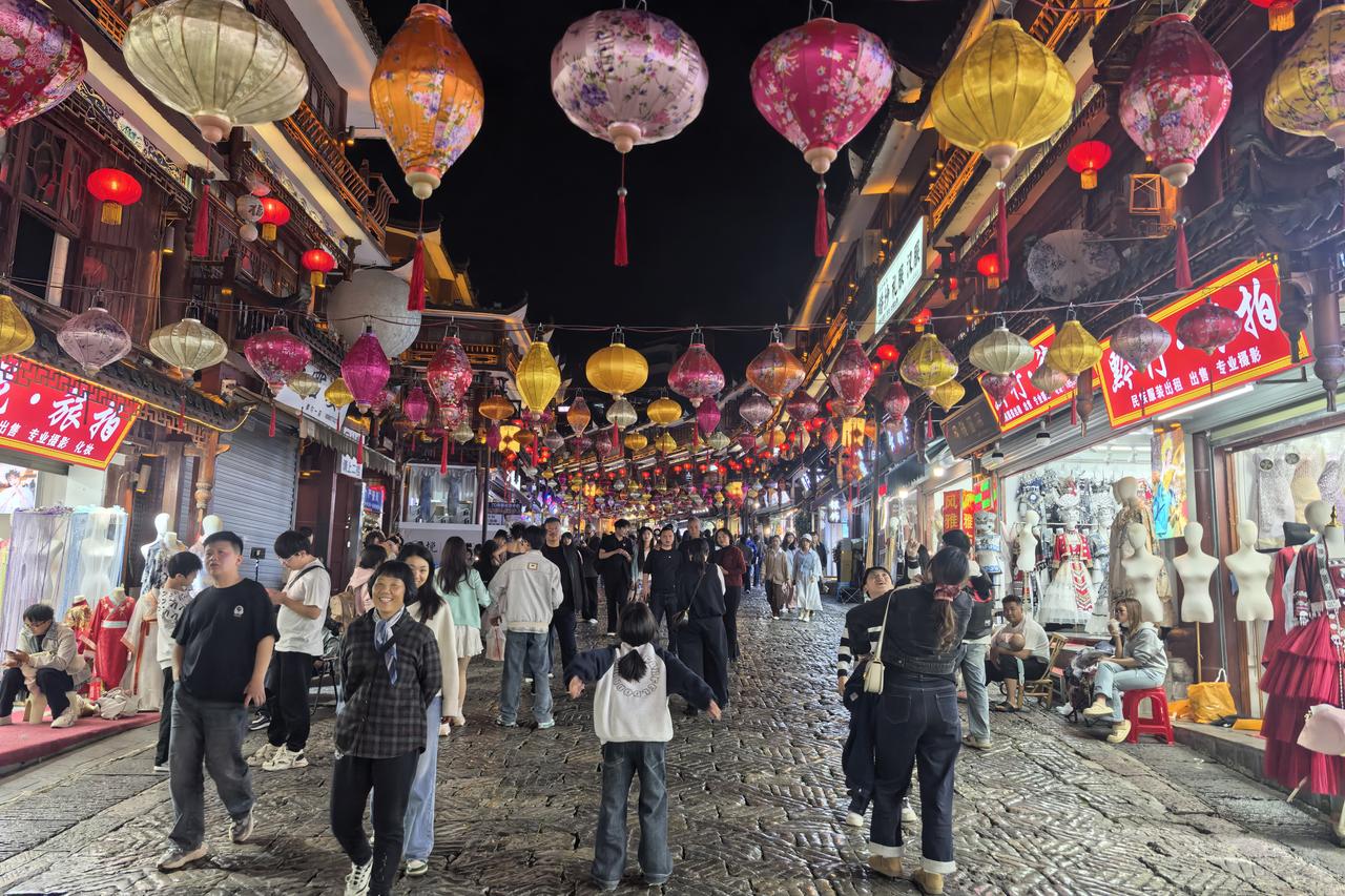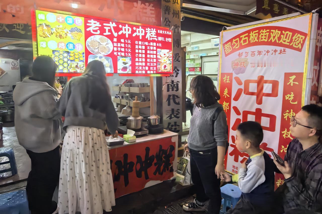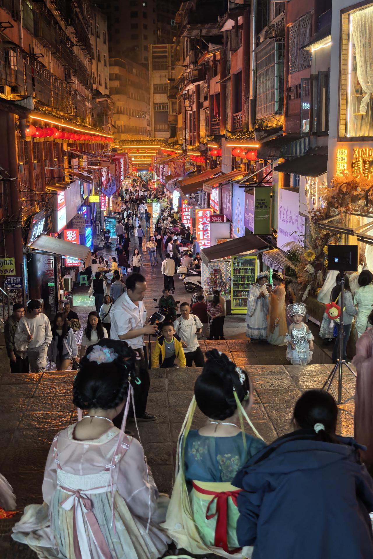 都匀石板街:灯火里千年烟火,夜色里的黔南浪漫|夜色漫过都匀,石板街的红灯笼次第亮起,把千年的时光都揉进了暖黄的光影里。青石板路被烟火气浸润,汉服姑娘的裙裾扫过斑驳的墙面,仿佛穿越回古都匀的旧时光。沿街的摊位热气腾腾,冲冲糕的甜香、铁板烧的烟火、糖水的清甜,在风里交织成最动人的市井旋律。