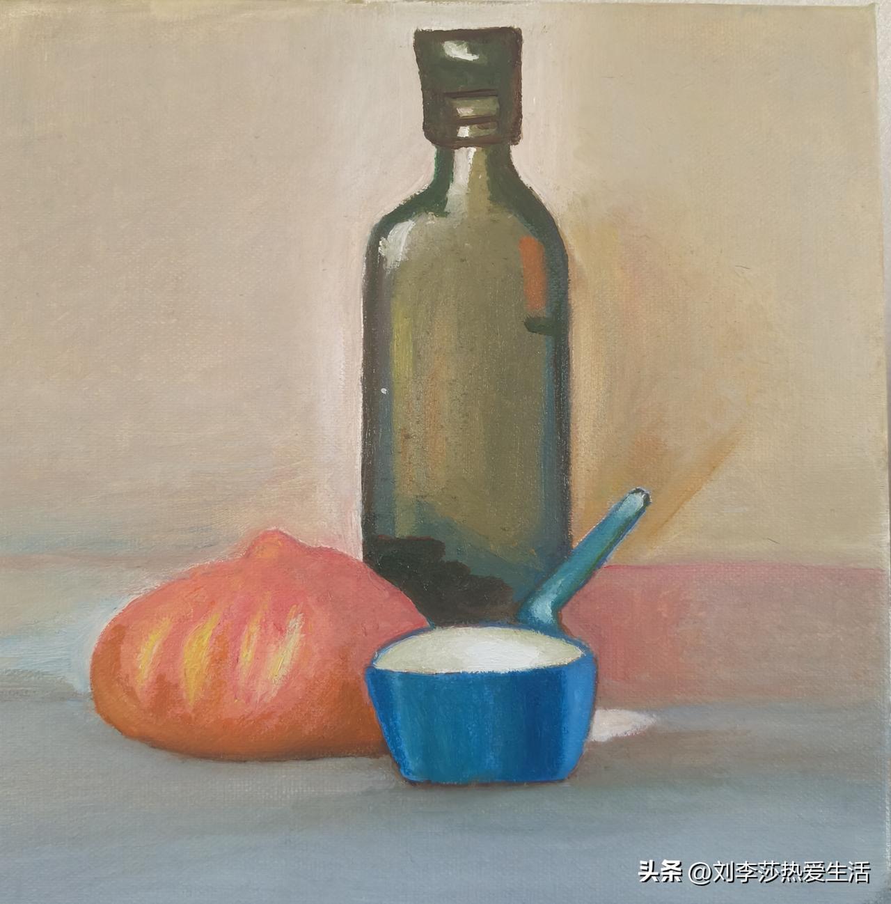 这次要学习的三幅画里,最难也最让我用心的,就是《厨中小景》。它是油画的基础“三板斧”——用笔、调色、造型。从认识每一种颜料,到理解色彩的规律,再到掌握实用的调色方法,这些都是2月8日老师线上教学时,一点点教给我们的知识。我一边听、一边记、一边练,慢慢摸到了油画的门道。