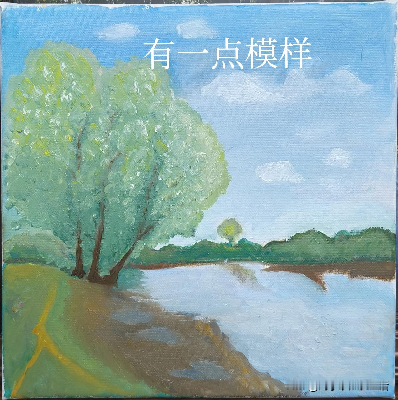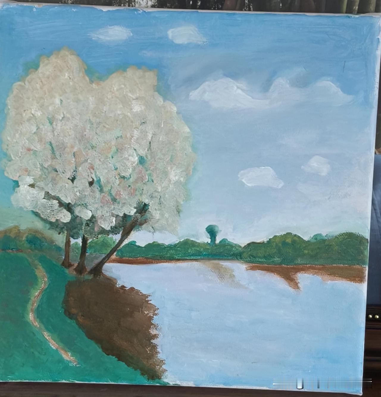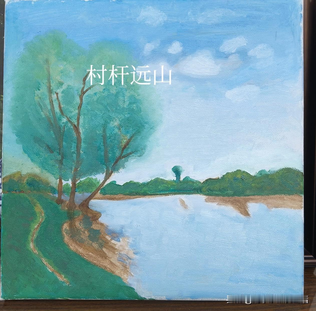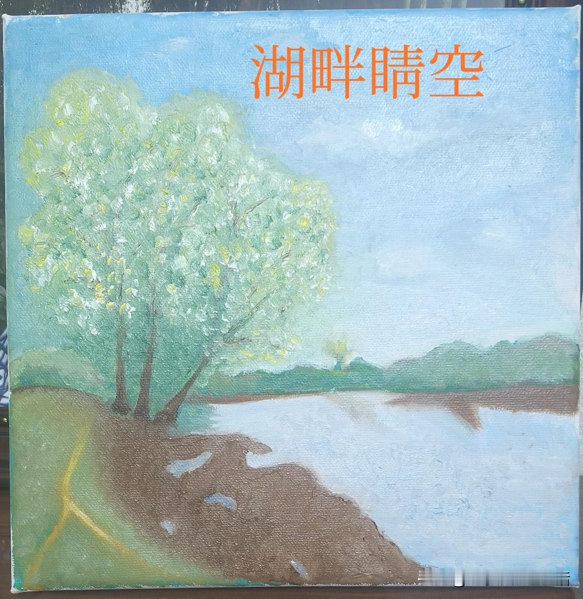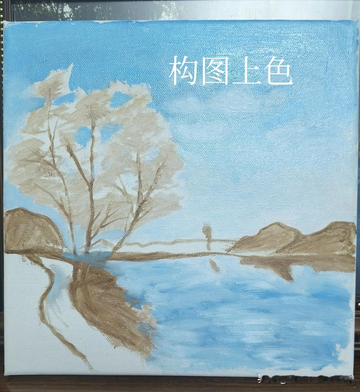 春节期间我做了个计划,要完成节前老师布置的作业。再过几天初八,马上就要开课了,我完成了一幅名为《湖畔晴空》的画。
