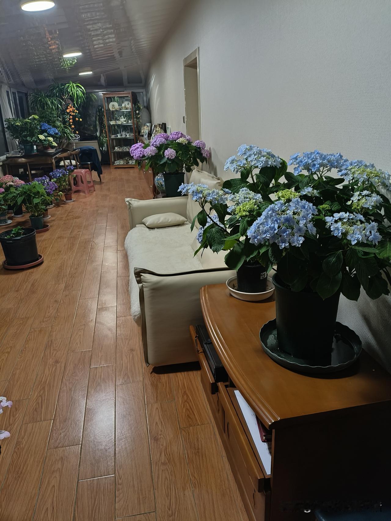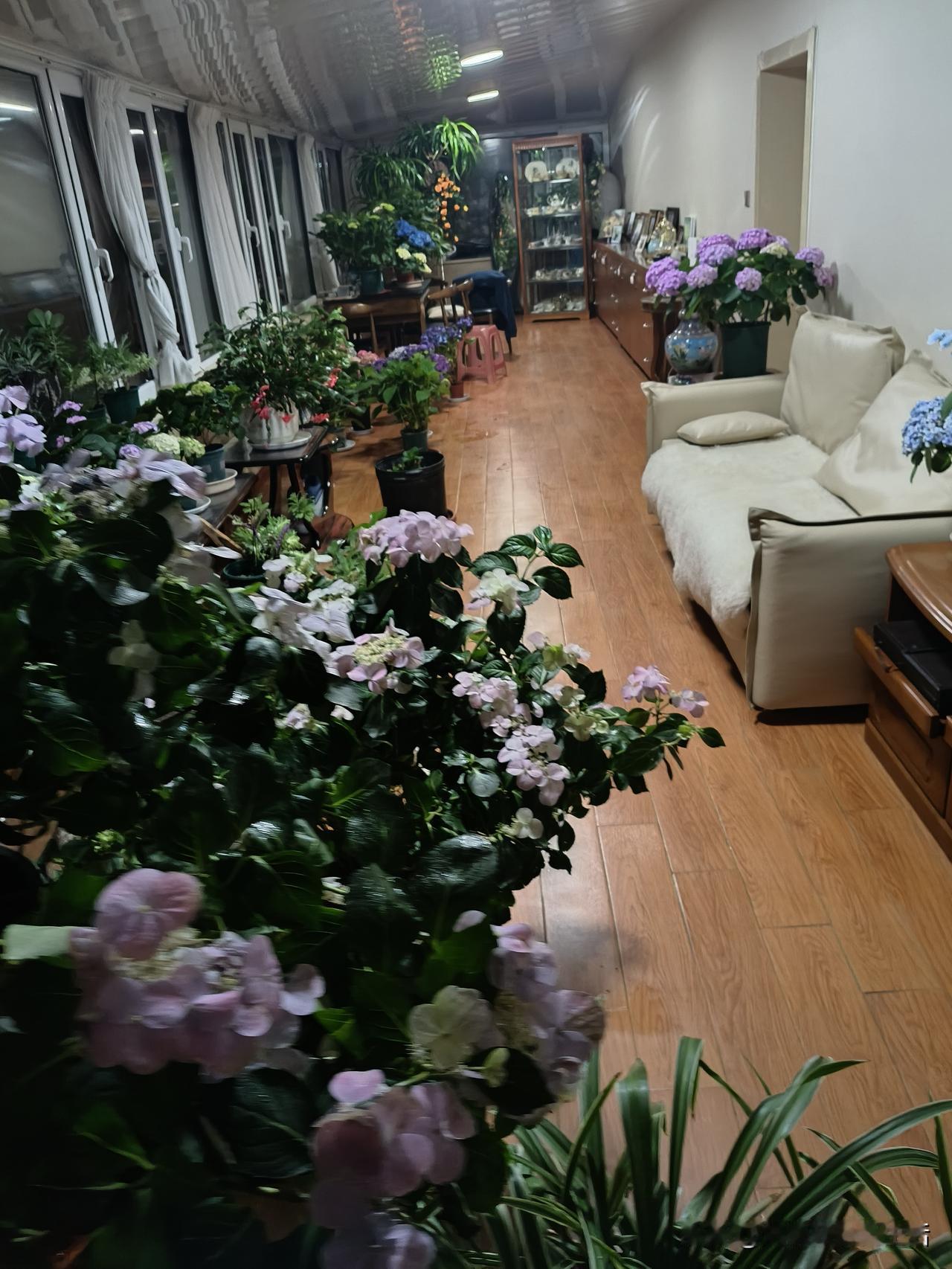 我相册里近期拍的花,是阳光房里的各类绣球花。那花瓣层层交织,在阳光的映照下,每一
