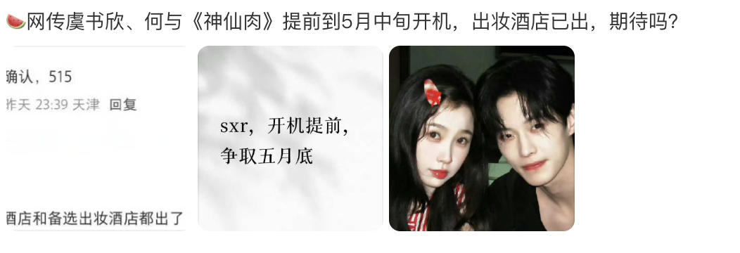 瓜主曝虞书欣神仙肉男主从何与换到邓为了,从五月中旬开机到今年开不了,这流程有点快