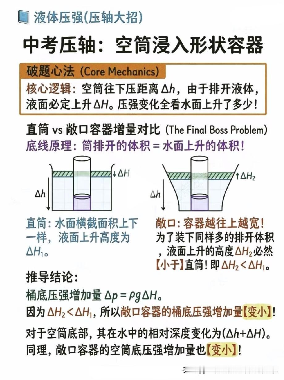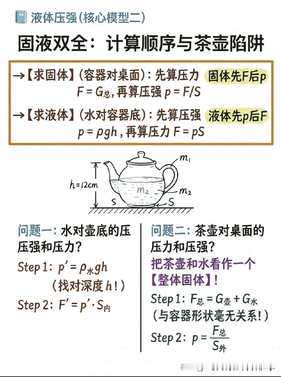 八年级下册物理: ①压力与重力 ②液体压强 ③摩擦力
