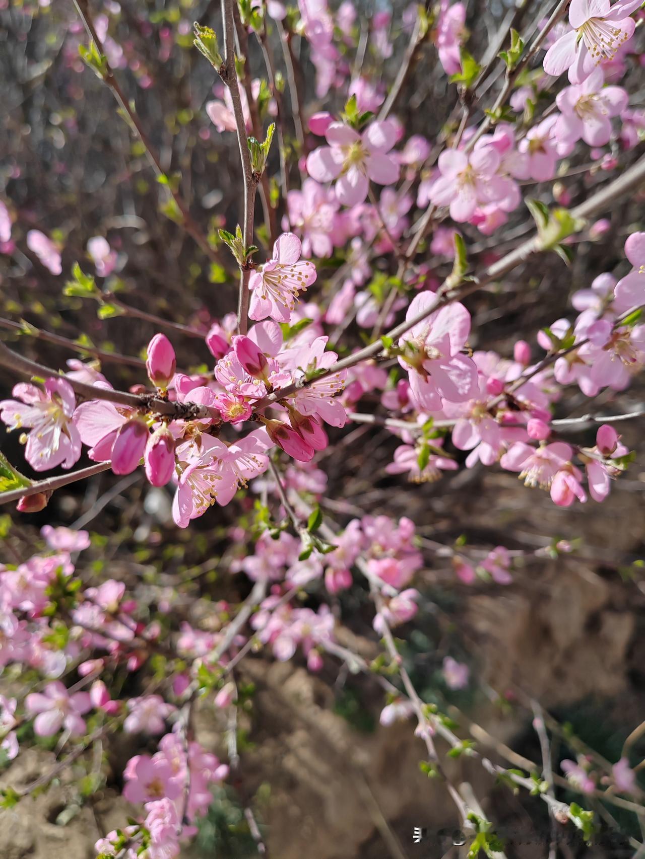 田梗边一棵不知名的小树开满了鲜艳的粉红色的花儿,极像桃花但却不是桃花,叶子和榆树的叶子一模一样,大家快来认识一下吧。A small unknown tree by the stalk is full of bright pink flowers, very similar to peach blossoms but not peach blossoms, and the leaves are exactly like the leaves of an elm tree. Come and get to know it.[微风][微风][微风]
