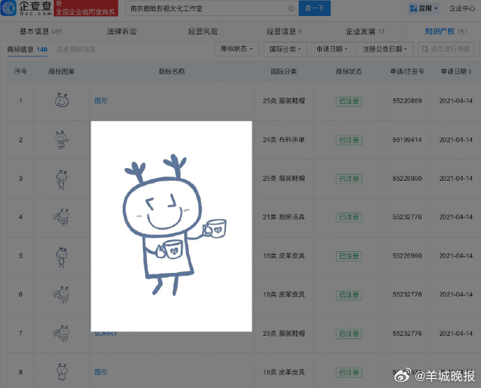 #鹿晗已注册小七娃娃商标#【#鹿晗LH7商标曾被抢注#】近日,鹿晗工作室启动“LH7宇宙专列”主题企划,宣布将推出以原创IP形象“小七”为核心的实体玩偶。“小七”是鹿晗2018年推出的原创卡通角色(源于绘本《小七的冒险世界》系列),定位为“冒险宇宙”核心人物。#鹿晗工作室 小七娃娃#企查查APP显示,由鹿晗独资的南京鹿晗影视文化工作室已申请注册多个小七娃娃商标,国际分类涉及服装鞋帽、布料床单等,该批商标申请于2021年4月,当前大部分商标已注册成功。此外,“LH7”商标曾被台州某服饰公司申请注册,目前该商标已被驳回无效。更多消息:#罗志祥方否认猝死传闻##宋祖儿被男粉求婚##网友评业内男明星咖位##胡巴每年都给井柏然过母亲节##郭敬明的剧连演员本人都看不懂#(编辑:杨雨桐;审签:谢杨柳)
