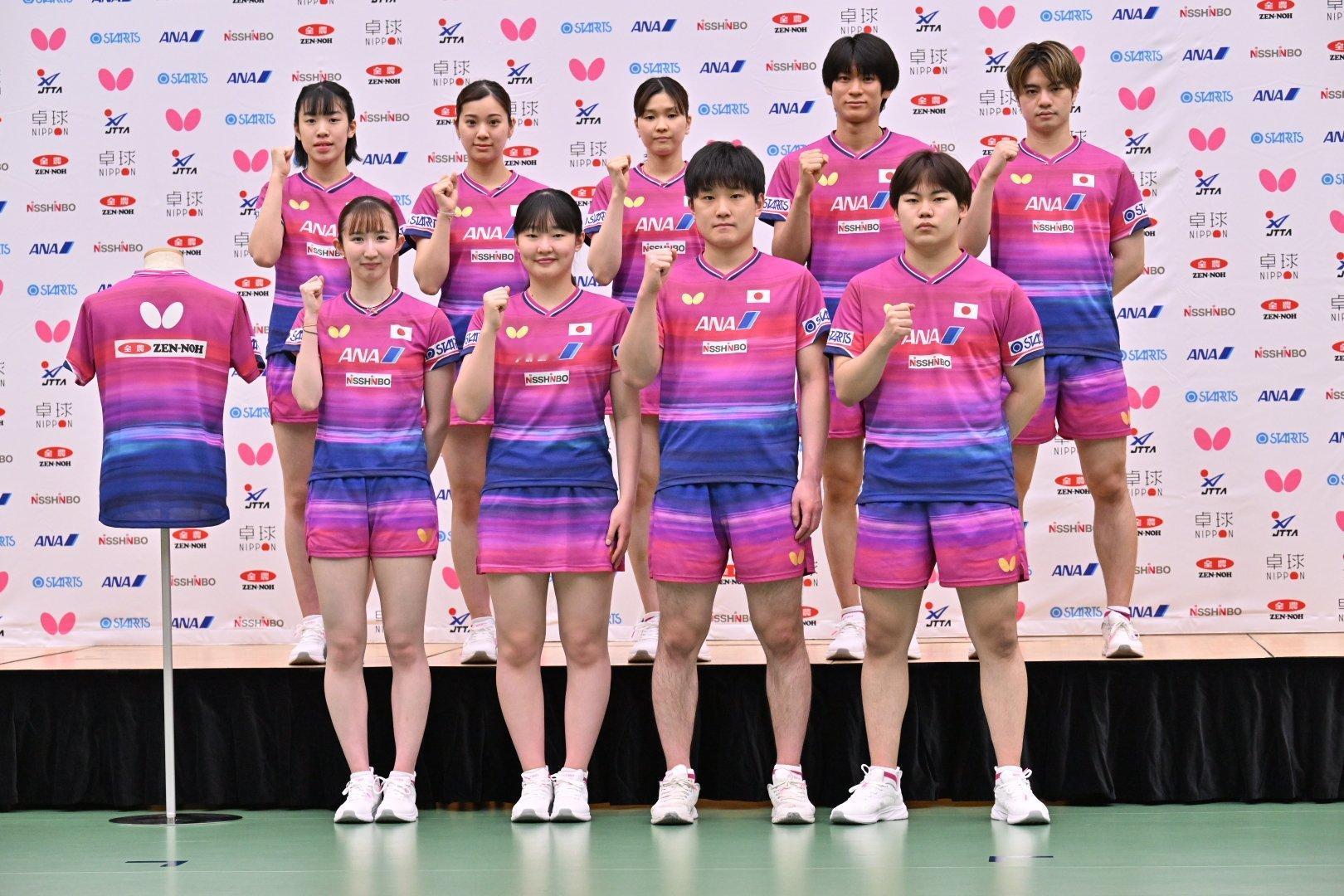 张本智和张本智和2026年伦敦世乒赛 在4月14日,伦敦世乒赛之前,日本国家队在味之素国家训练中心举行了记者会。会上不仅介绍了球队备战情况,还正式发布了本届世乒赛日本队将穿着的官方比赛服,包括“インフィリア2”系列的上衣、短裤以及裙装。