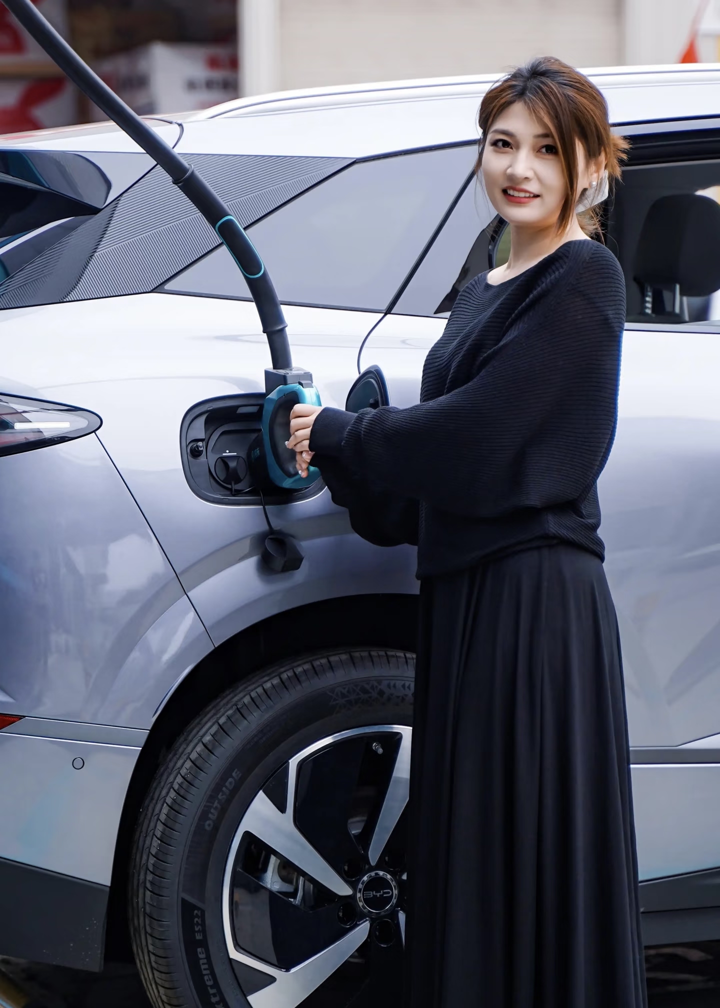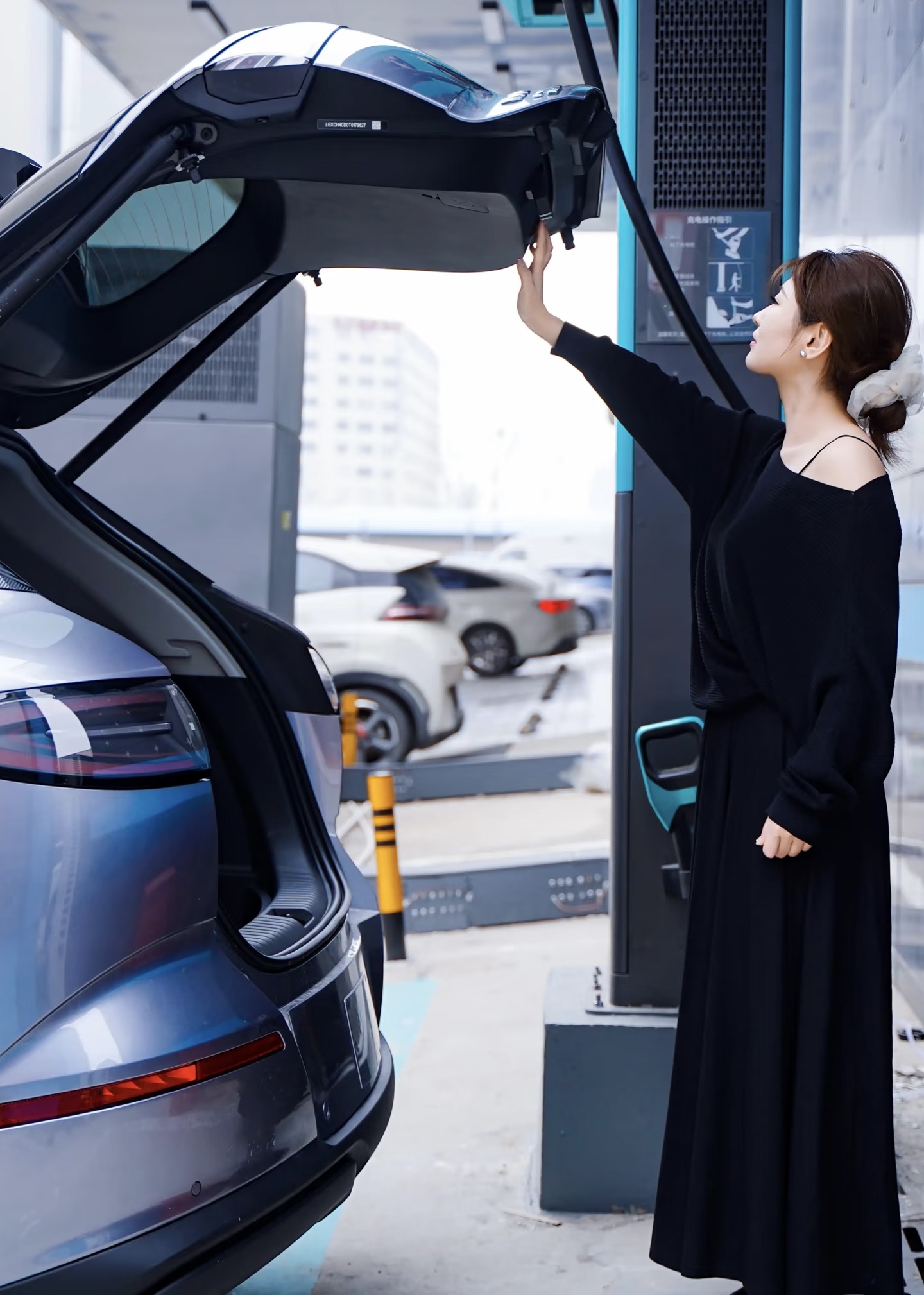 闪充枪的个头跟我们平时用到的快充枪大小差不多,重量很轻,即使是女生基本上也不存在拿不动的情况,并且上面还有滑轨的设计,这样我们在挪动的时候就会方便很多,只是我感觉线还是稍微有点短,如果车离的远的话,可能就够不到了。