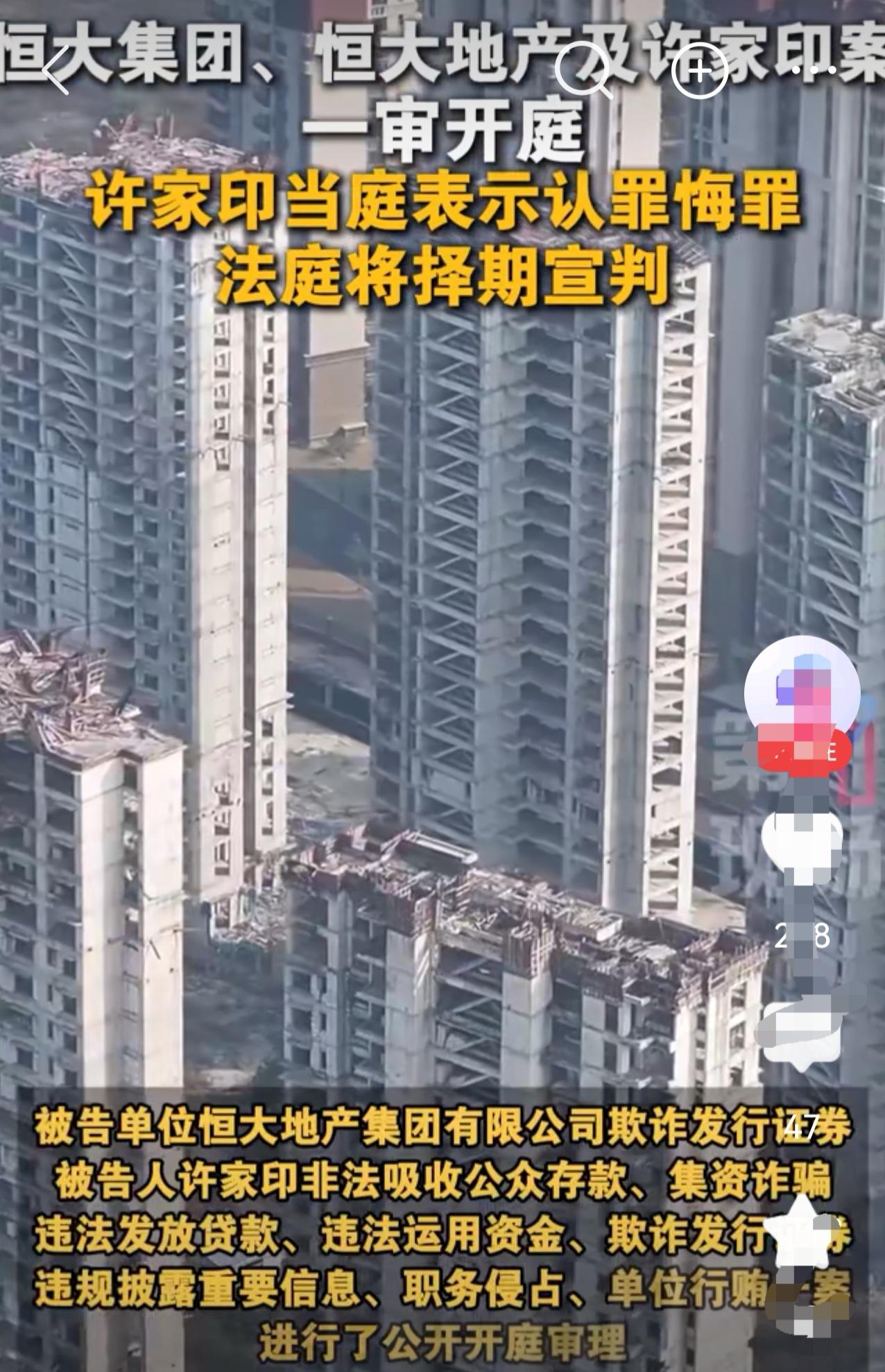 官方发布正式消息:许家印以及恒大集团系列案一审公开开庭。