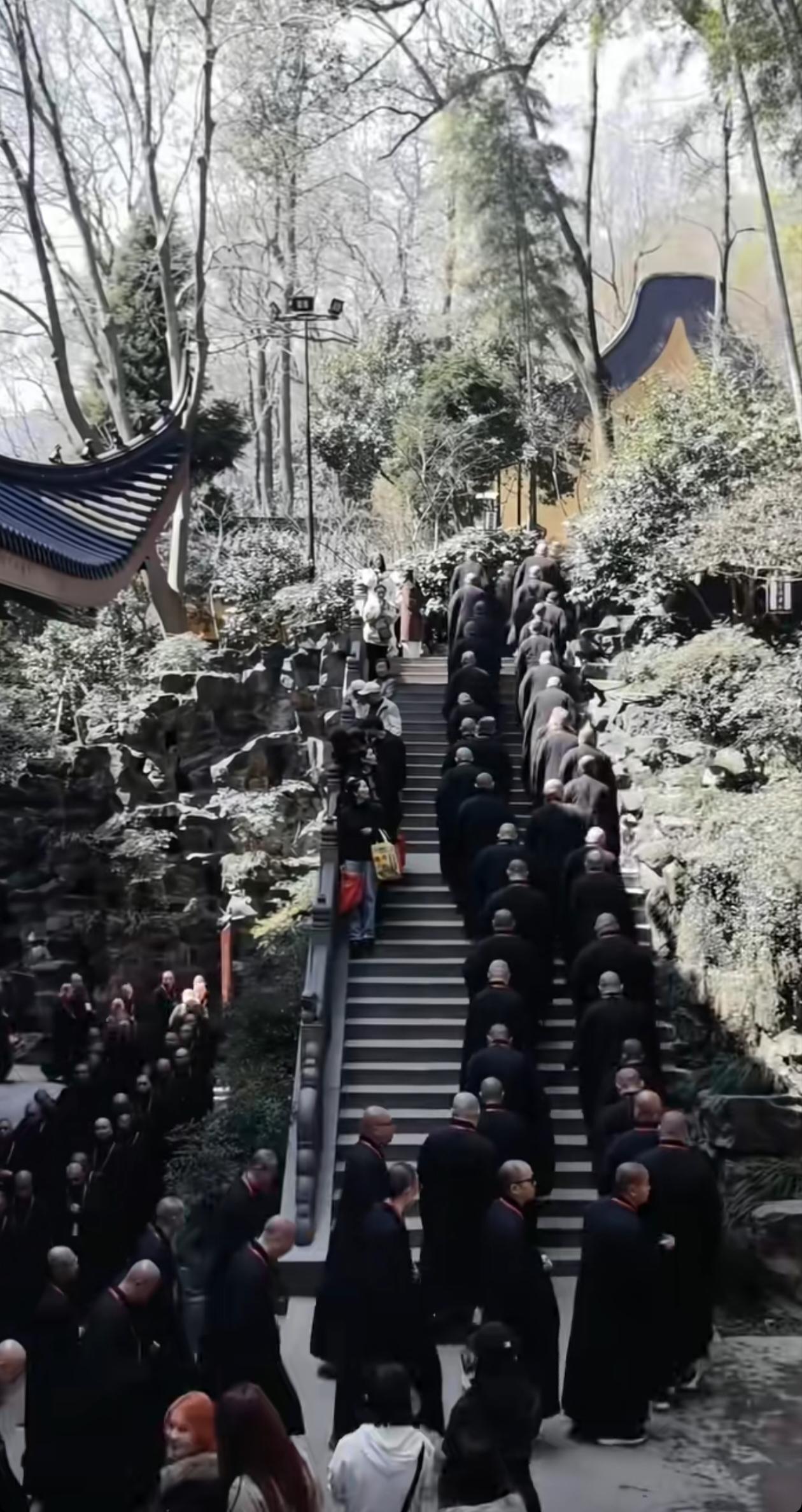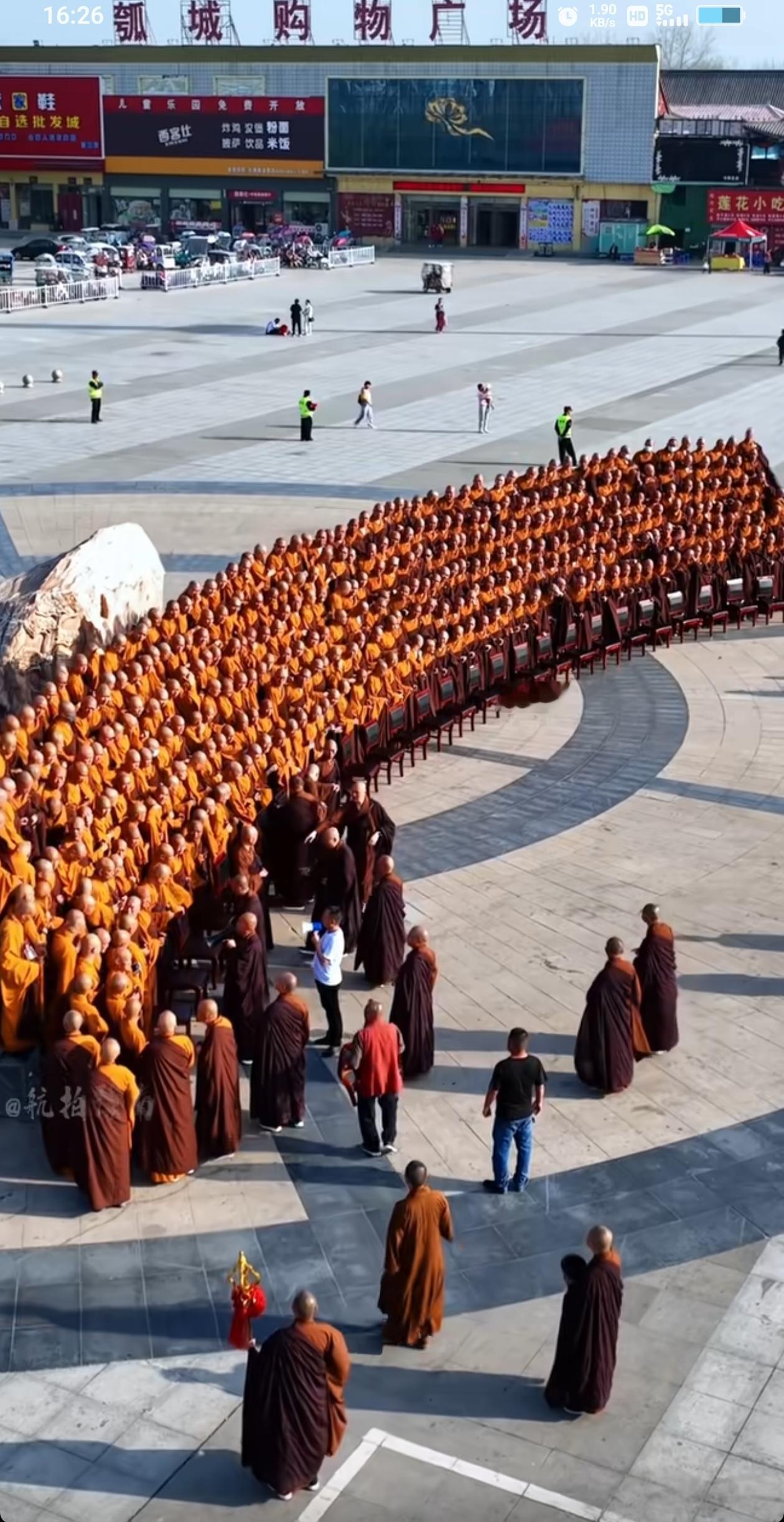 看到庙内庙外这么庞大的和尚队伍实在是令人震惊,咋就这么多人愿意出家呢?这么多人,庙内能清净吗?他们甚至还参加外面的活动,集体合影留念,场面盛大,堪比一些文艺演出。是不是寺庙里的待遇太好了?当然,最怕的就是里面混杂一些假和尚和坏人,确实要整治了。
