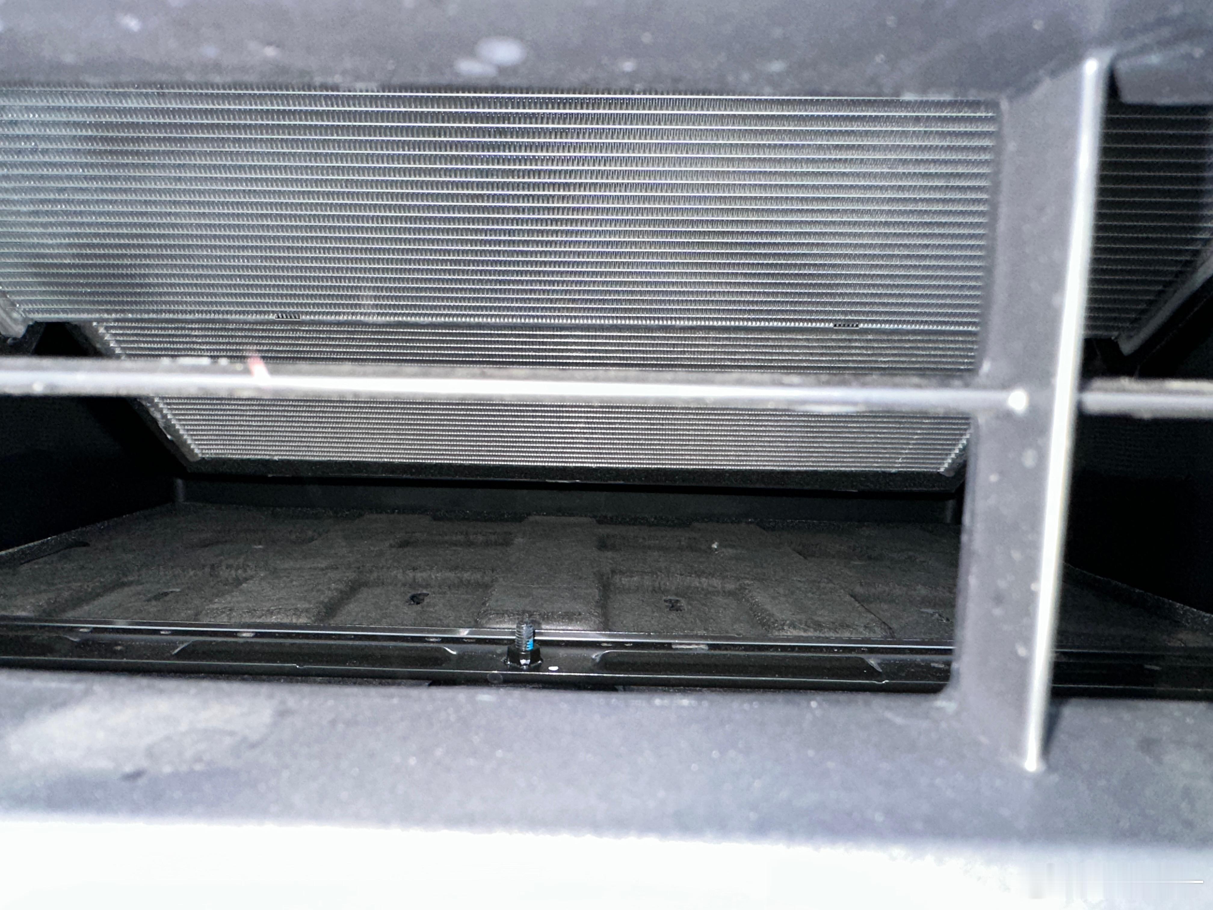 试着琢磨其中的道理,我发现散热器朝前躺不容易堵塞,吸进去树叶什么的它能自己掉下来。