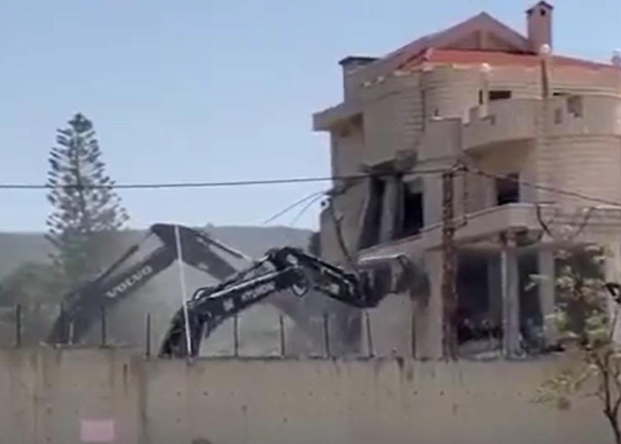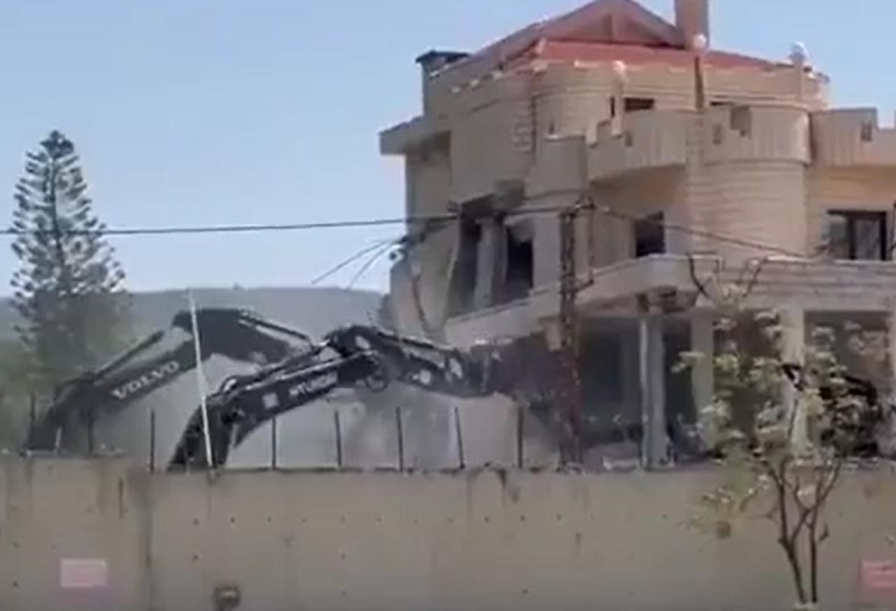 第三步,再把挖掘机等拆除设备开进去,把没有在轰炸中摧毁的房屋,再次进行拆除。
