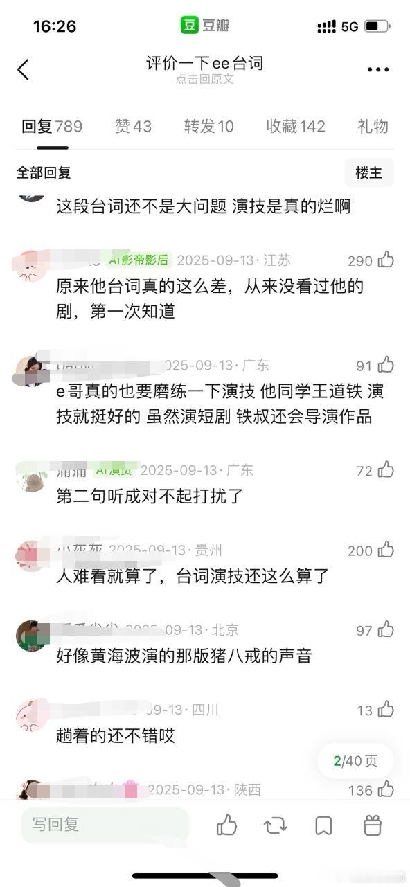 今天郫县豆瓣酱很多挖f贴,把审判老呃的台词贴顶上来了,网友都觉得他台词实在不行,演技也不行。
