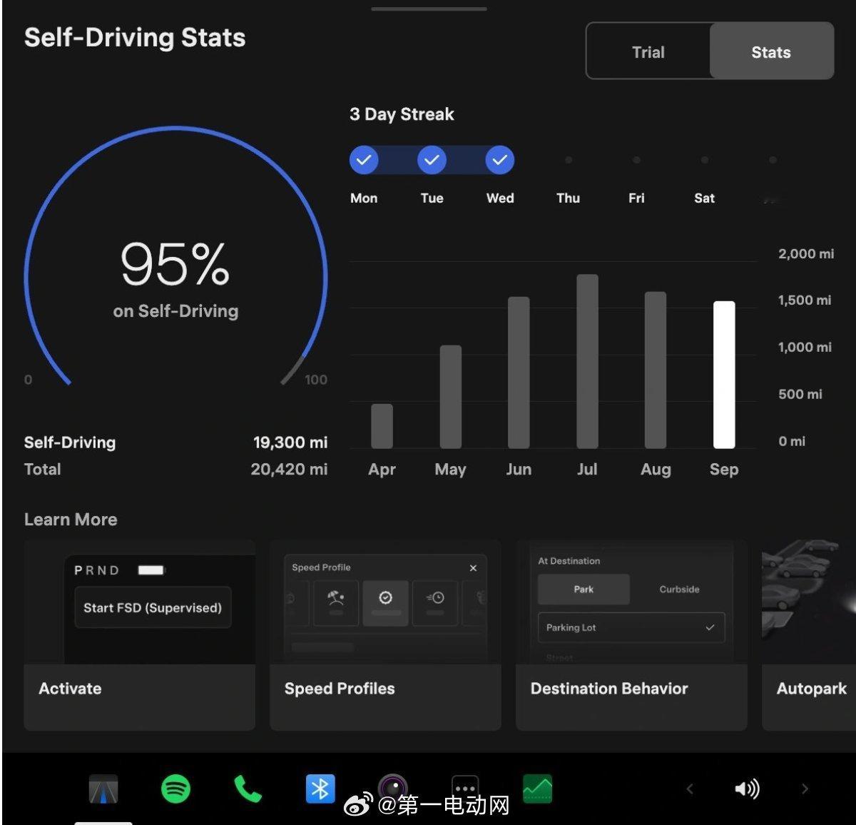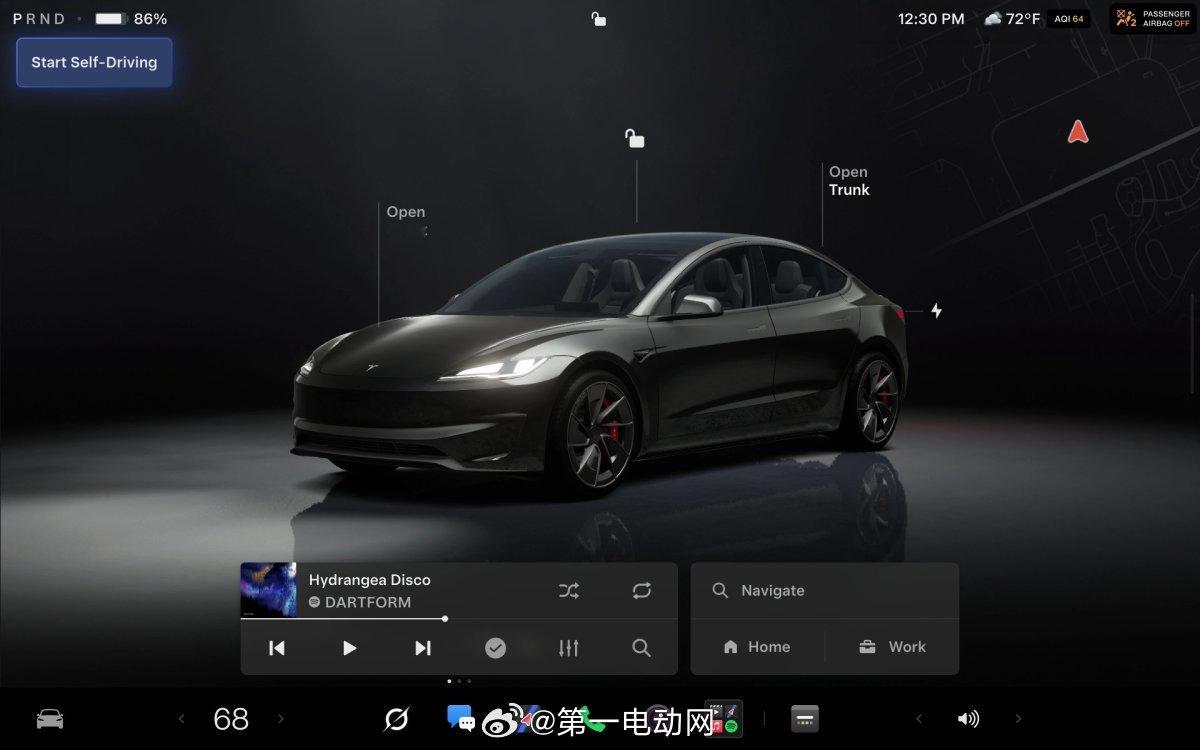 1️⃣ 自动驾驶体验全面进化搭载AI4硬件的车型,获得全新改版的自动驾驶应用界面,支持车内一键订阅FSD(全自动驾驶)功能,可直接在车机大屏上查看实时FSD使用数据,驾驶辅助的运行状态更加透明。