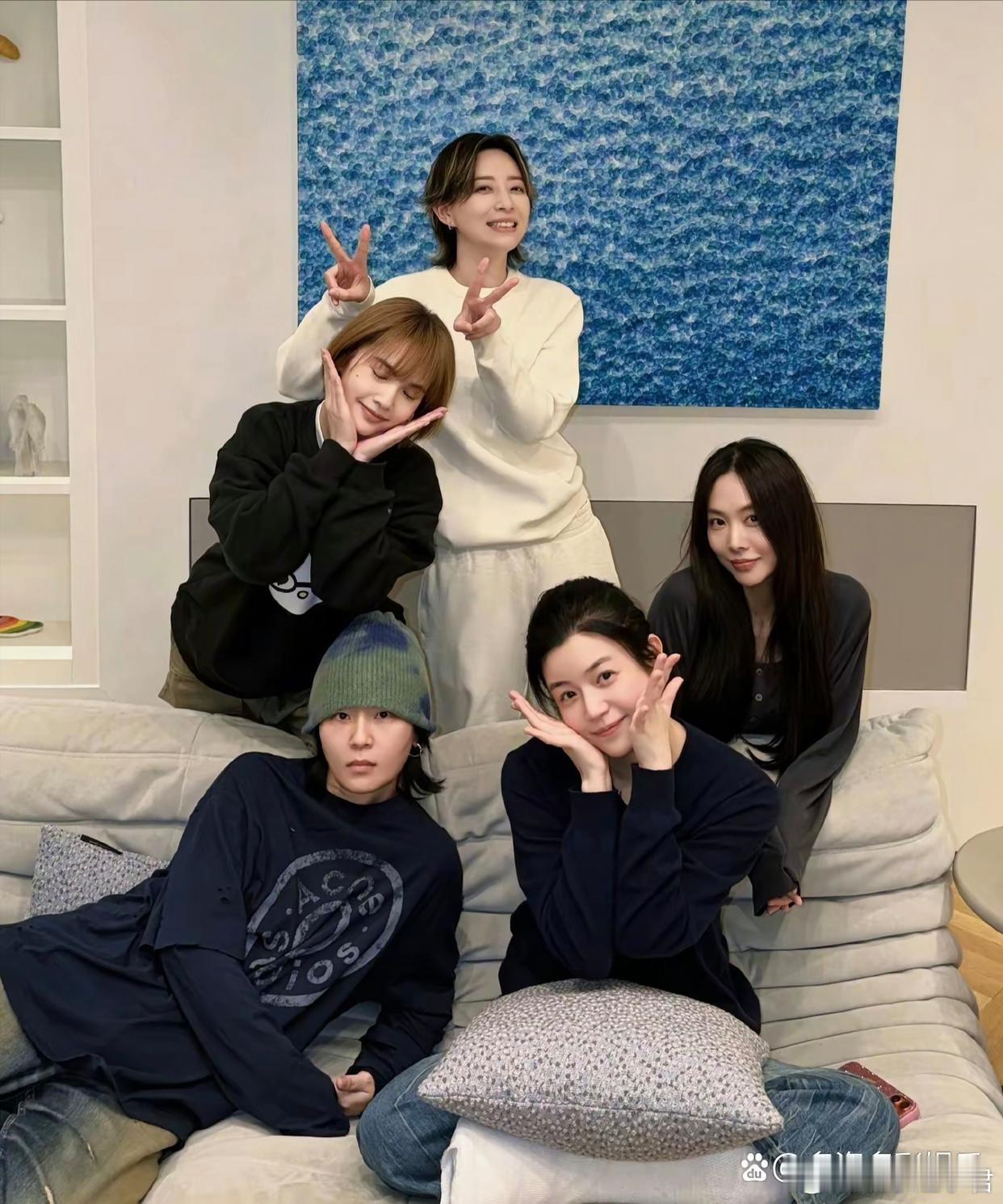 陈妍希在脚上石膏上竟然写了两个字!她与杨丞琳李斯丹妮等姐妹聚会,大家在一起很开心,特意拍照留念!