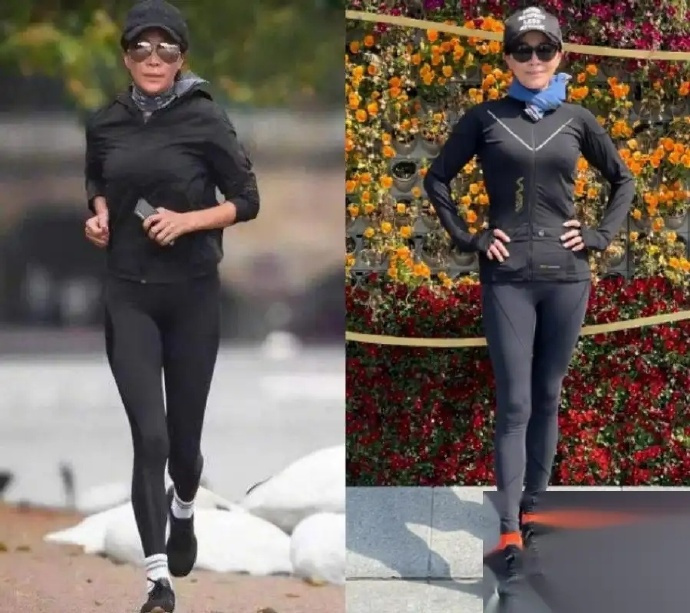 58岁的刘嘉玲户外晨跑,穿紧身裤不遮臀部,网友:还真没一点老人样