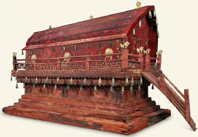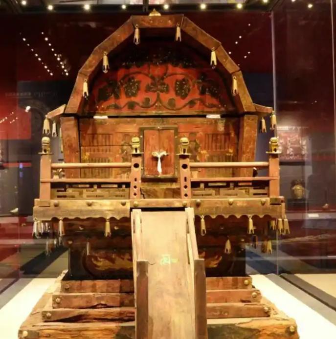 二零零三年通辽吐尔基山辽代大墓现世,墓室简陋却出土鎏金银马鞍、龙纹金花银盒等皇室重器,彩绘凤棺饰金凤祥云,尽显契丹皇族规格。墓主为贵族女性,头戴金头箍、身佩金饰玛瑙,身着十一层丝衣,却无辽代贵族常见的金面具与金属网络。遗骸通体发黑,腹腔检出大量水银,疑似中毒骤亡仓促入葬。结合随葬铜铃与乐舞器物,专家推测她是兼具皇室身份的萨满女祭司。