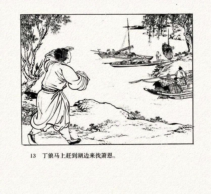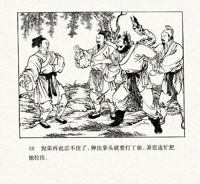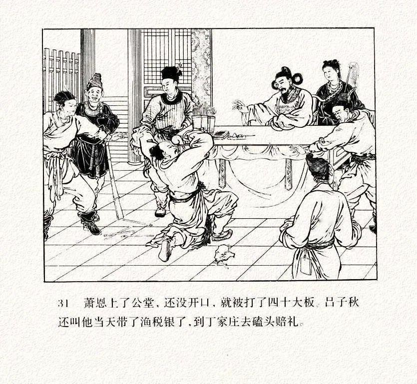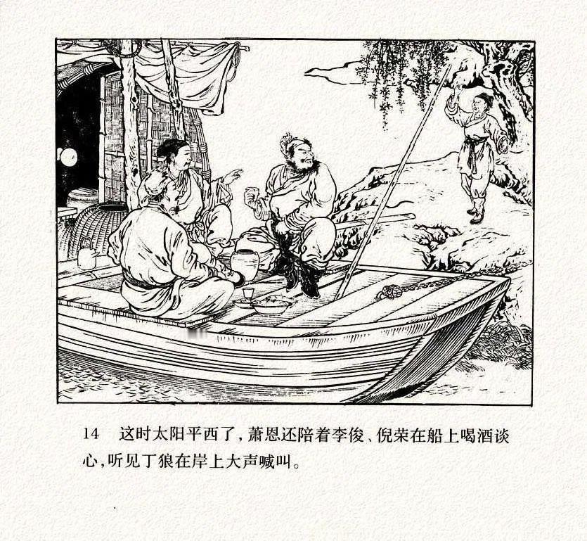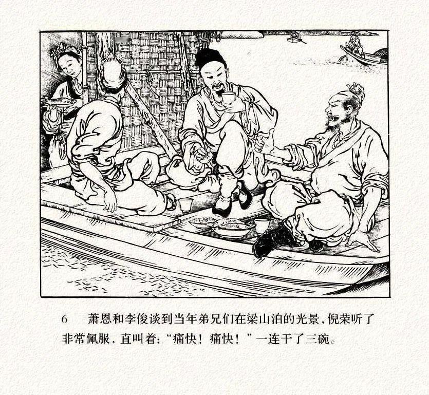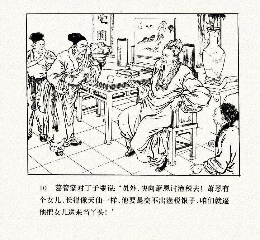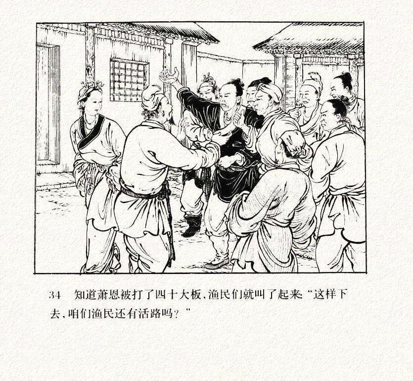 连环画《打渔杀家》中的衣纹描太跳脱了,只要你注意了人物衣褶,眼睛就会不自觉的一直盯着每幅画的衣褶,挪不开眼了。