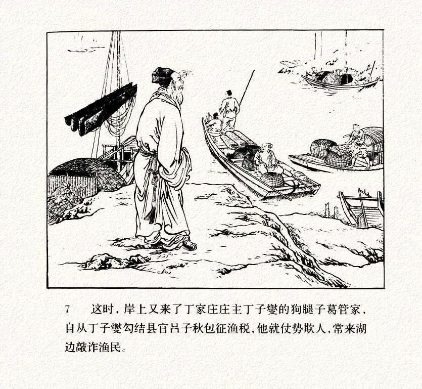 连环画《打渔杀家》中的衣纹描太跳脱了,只要你注意了人物衣褶,眼睛就会不自觉的一直