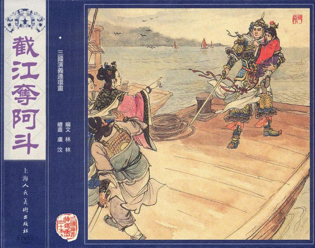 《截江夺阿斗》是《三国演义》中的经典桥段,内容是讲述孙权诈称国太病危,诱骗孙夫人带阿斗回吴意图扣留,最终被赵云和张飞夺回的故事。包含62幅图,情节完善赵云跳船夺子、张飞斩周善等都有,刘旦宅设计的封面赵云形象尤为经典。