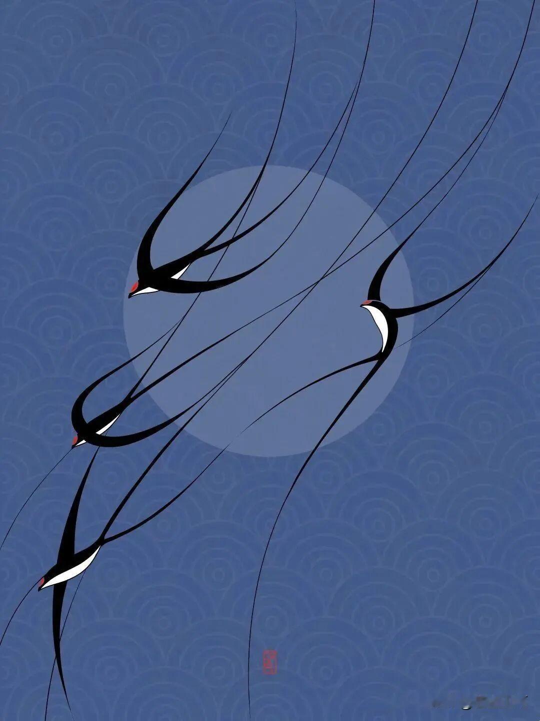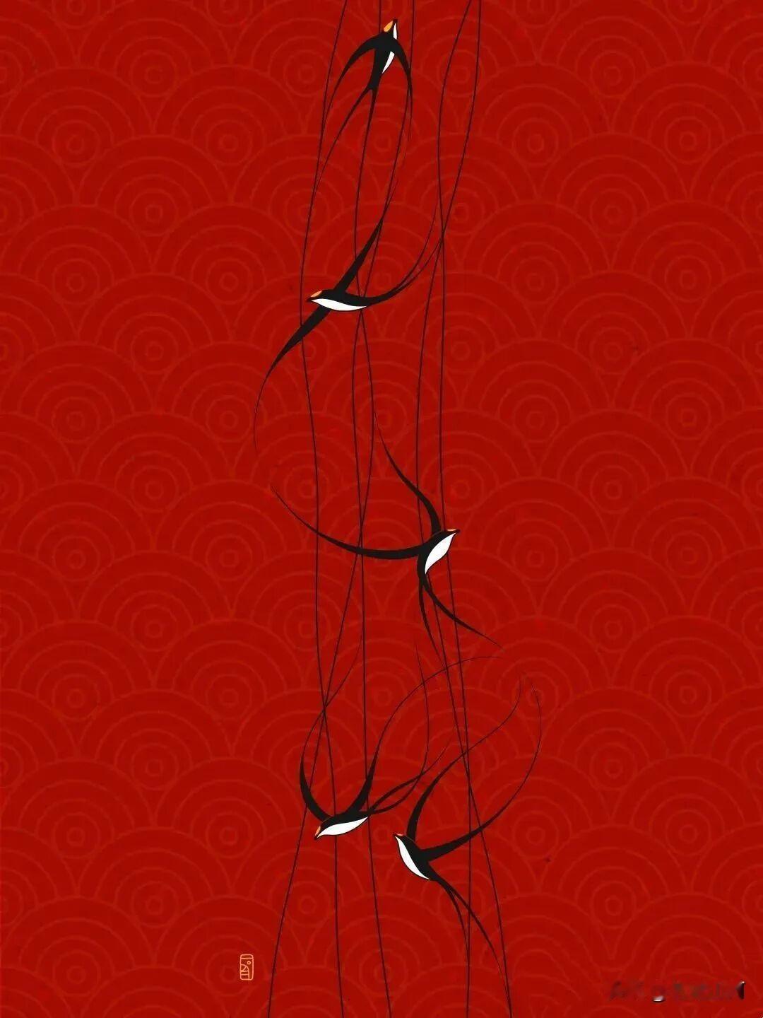不得不说线条是真的很美,传统笔墨结合现代审美的柳燕,画家燕春山以创作柳燕主题画作