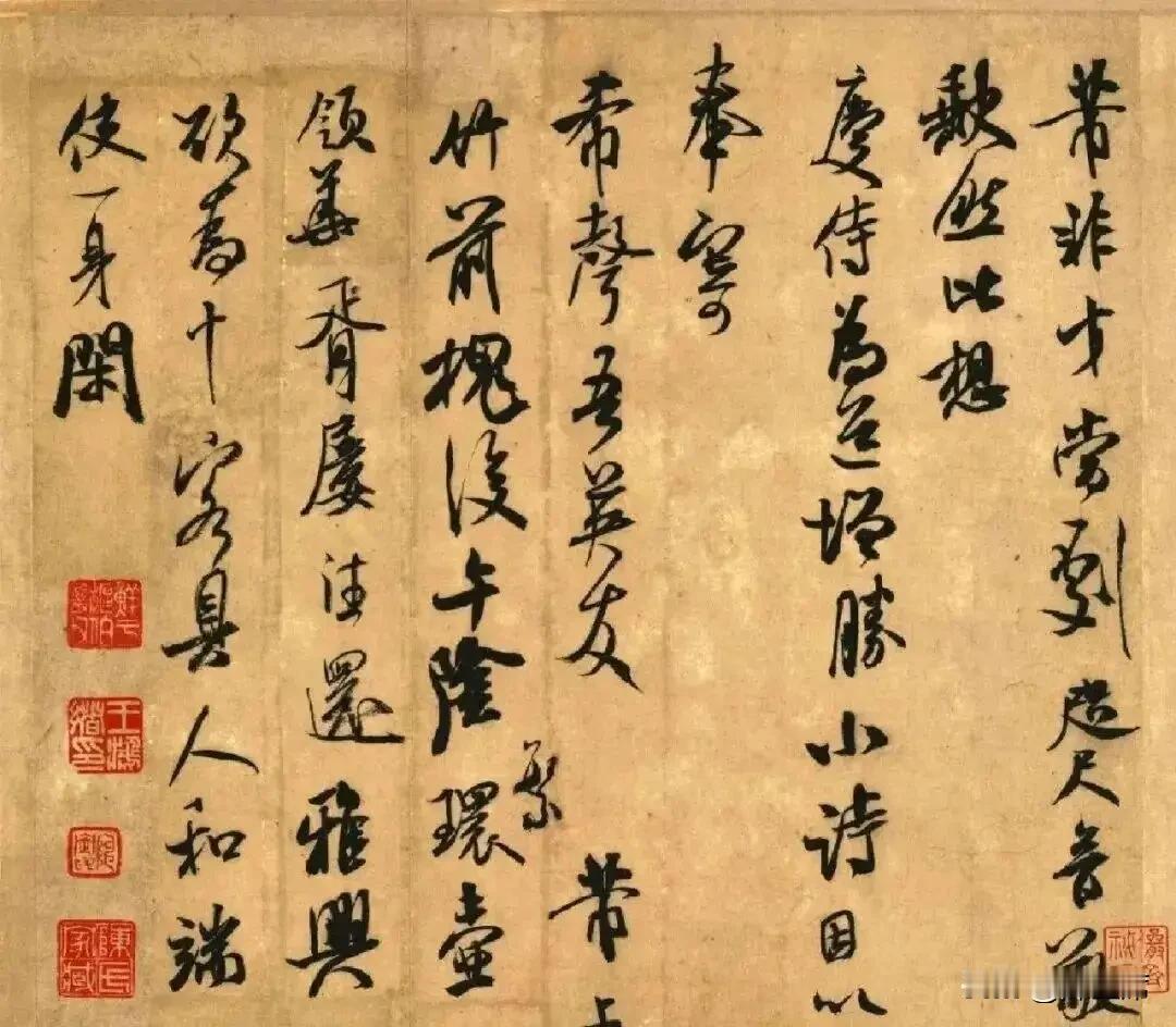 米芾行书《竹前槐后帖》,有个有趣的故事。米芾一生爱石成痴,相传作此帖时,心境或许也如他赏石般洒脱。此帖共 21 字“竹前槐后午阴繁,壶领华胥屡往还。雅兴未阑何计奈,却寻苔径访孤山”,尽显文人雅趣。