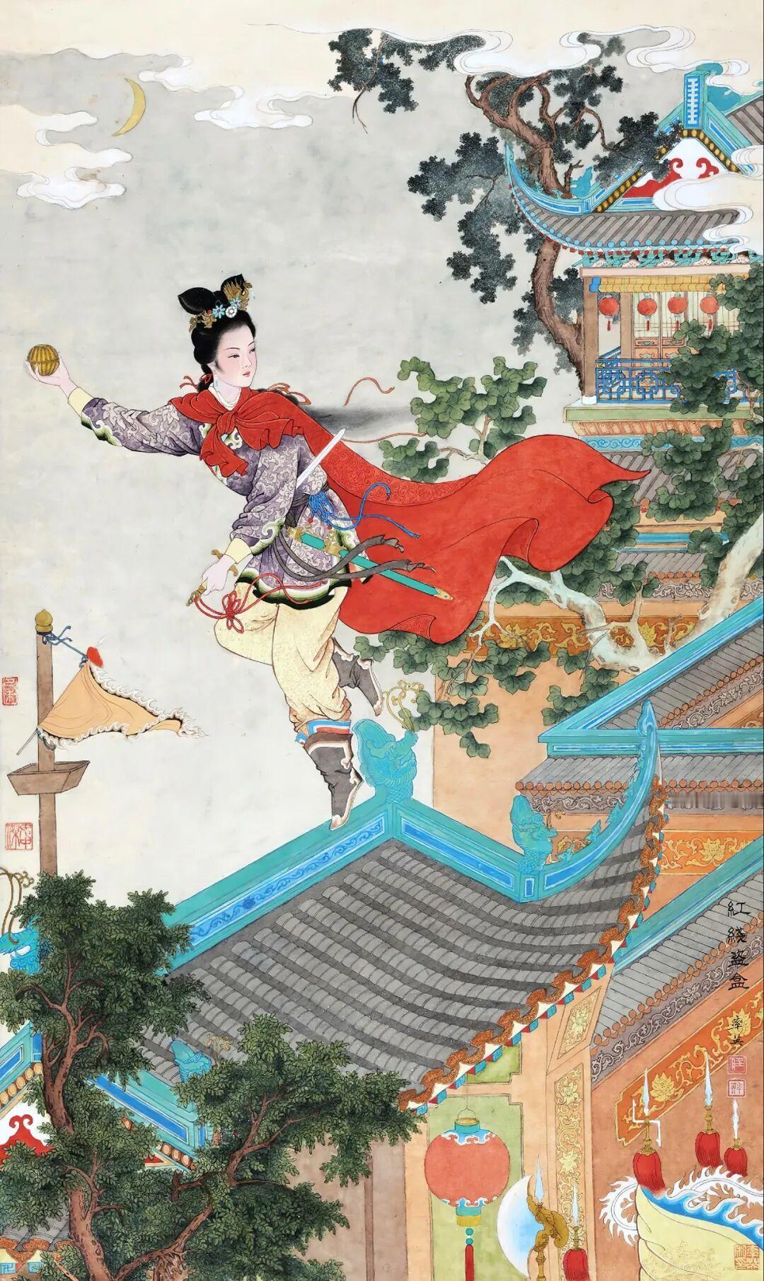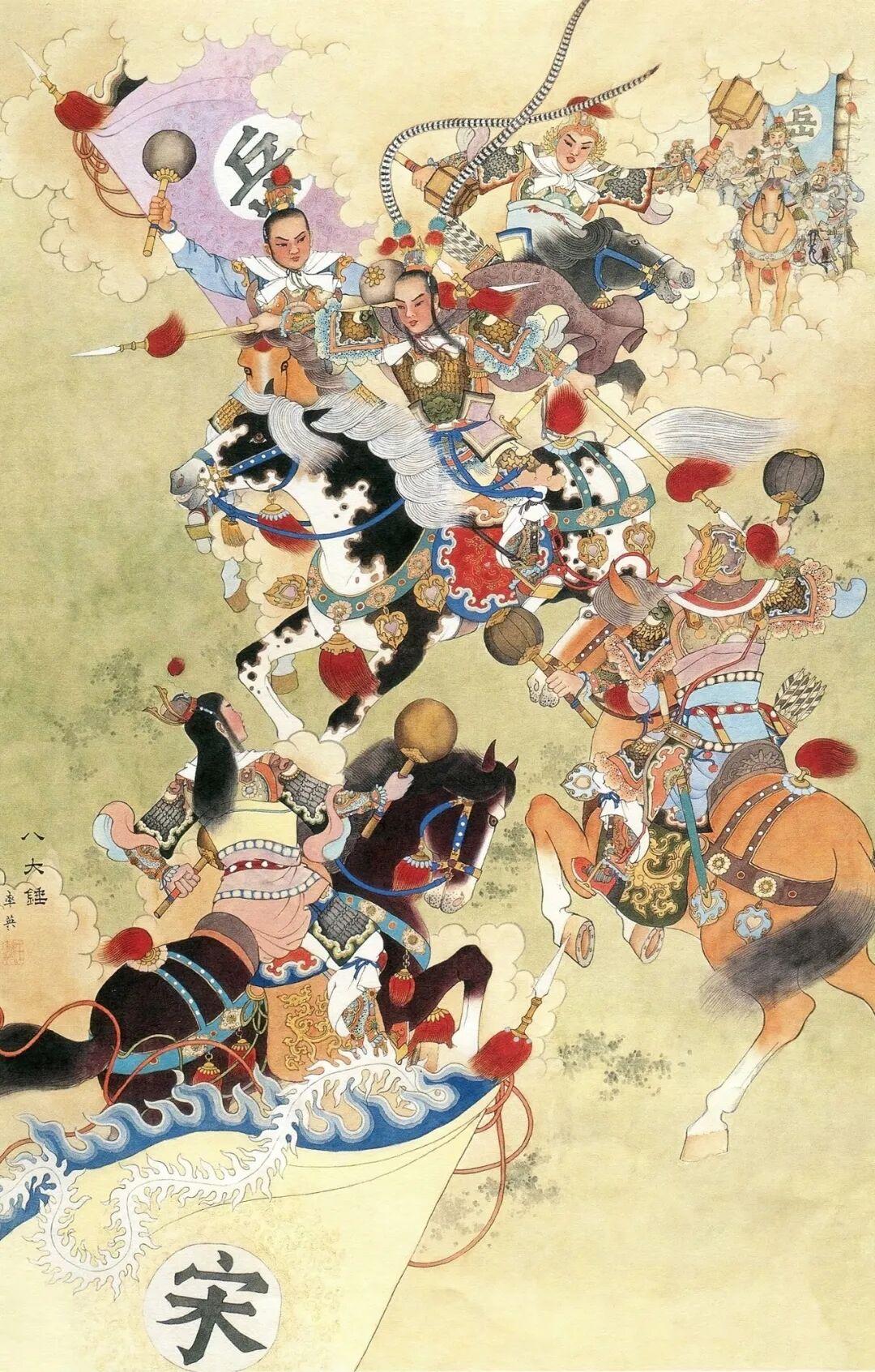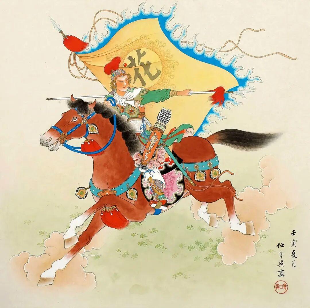 连环画大师任率英让中国传统古典美走进千家万户,美而不媚,雅俗共赏。他的年画的印刷发行量在1981-1985年间累计达1700多万份,他的年画作品以民族英雄、神话传说为题材,线条精细、色彩艳丽典雅,其中代表作《虹桥赠珠》以350万份居首(附图1),《百岁挂帅》210万份(附图2),《岳飞》264万份。