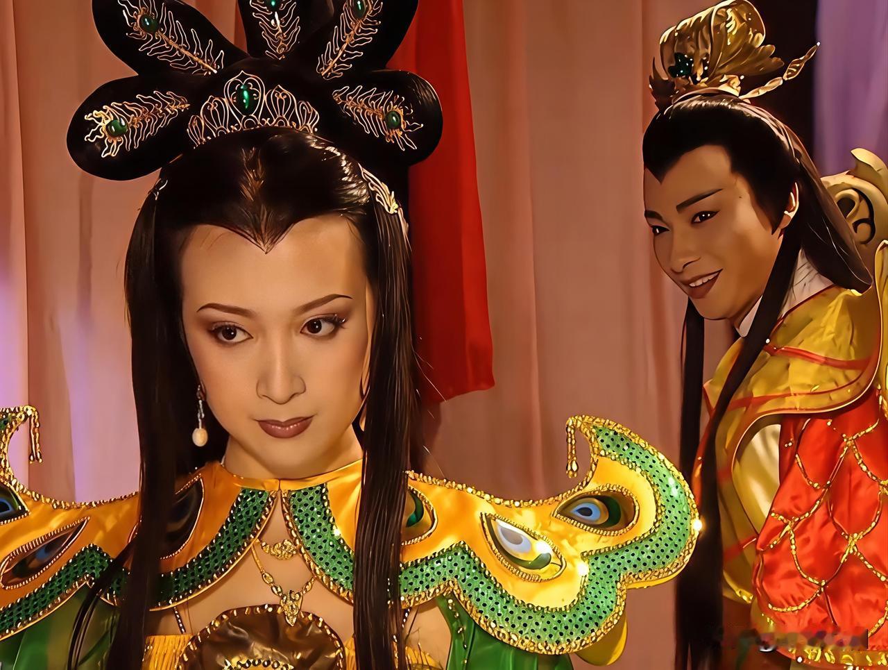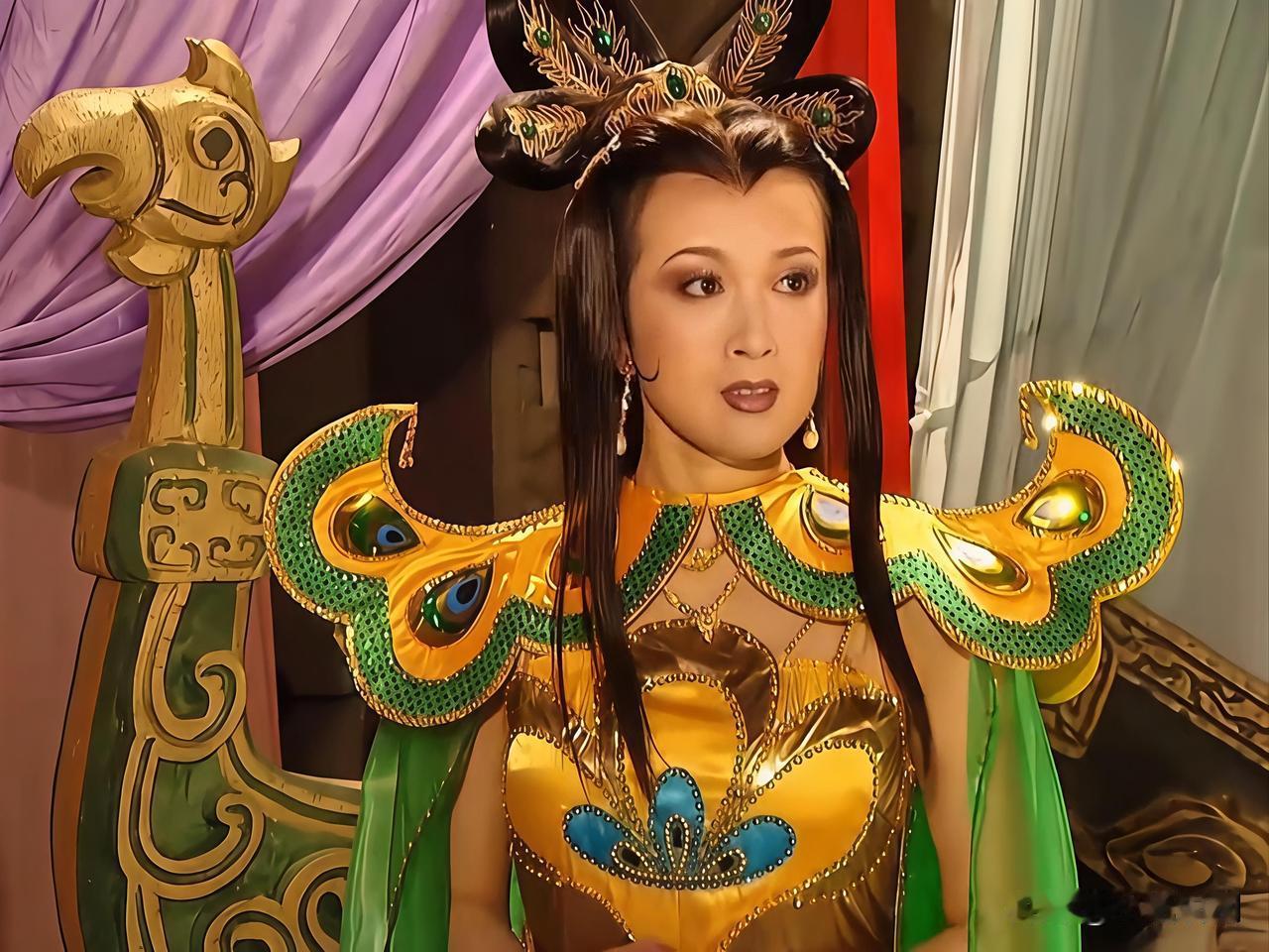 孔雀公主,是孔雀大明王菩萨的后代,由雌孔雀修炼成人形,居住在孔雀山之中,她容貌秀美,气质温婉高贵,心地善良,用情专一,身穿金色吊带紧身裙,外搭翠绿色纱衣披风,头戴金色花瓣发簪,她身姿轻盈,眉眼灵动,嘴唇红润,仙姿玉貌,雍容华贵,善于舞蹈,且自带孔雀灵韵,起舞时身姿曼妙,舒展优美,如孔雀开屏,一颦一笑极具古典美,在西游记中,她的法宝是孔雀扇,能够轻松扇昏对手,曾迷晕过武艺高强的大鹏金翅雕,成功脱身,待狮驼岭三魔被收服后,她带孙悟空,找到被锁在柜中的唐僧,助师徒几人继续西行。取经女 魔幻狮驼岭 西游记之狮陀 孔雀菩萨 孔雀公主礼服 西游记公主服装 孔雀仙子女神