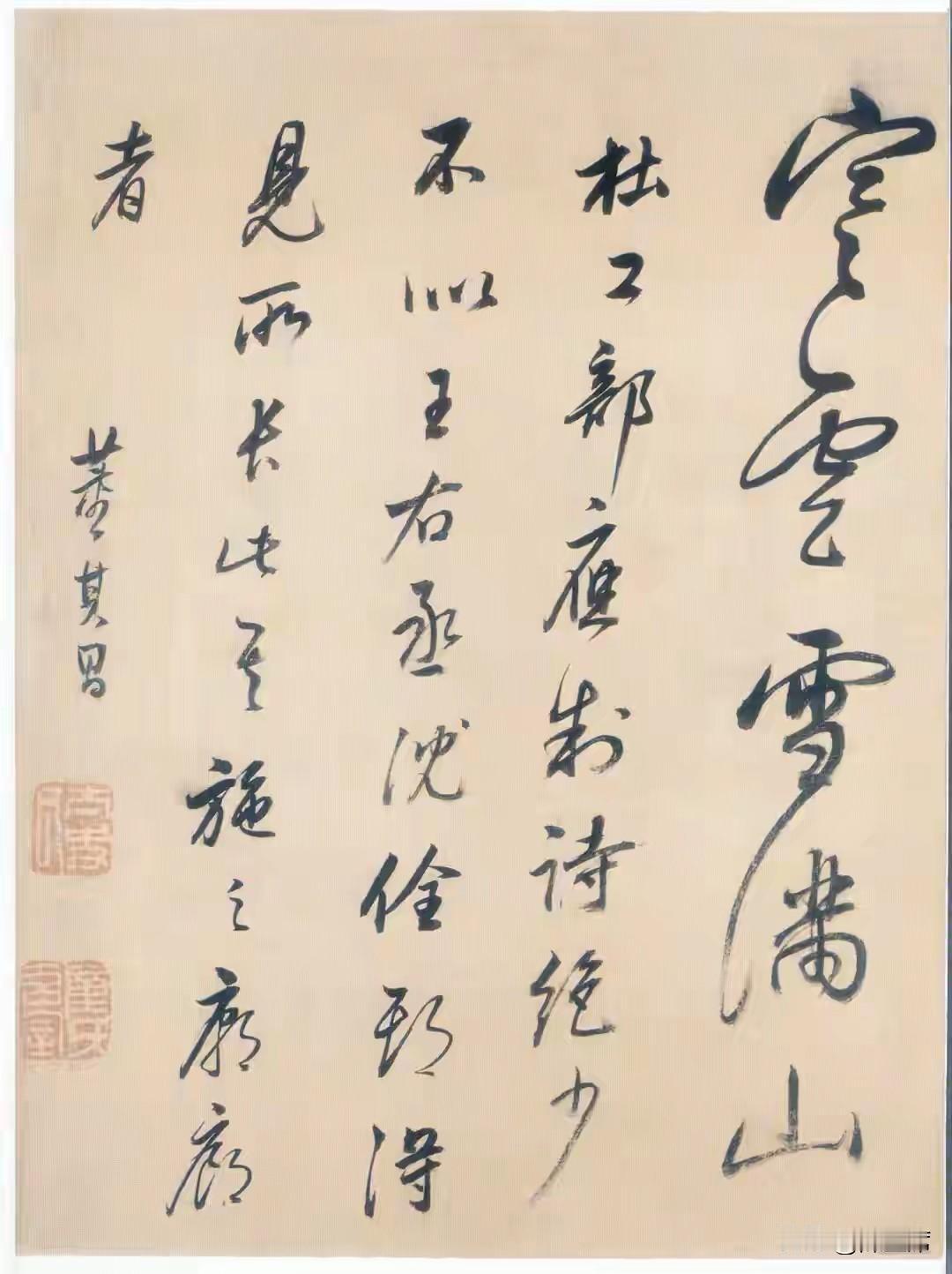 据说董其昌创作此作时,心境闲适,将自身的艺术修养和对文学的热爱发挥到极致。这幅作品不仅展现了杜甫诗歌的豪放洒脱,更体现了董其昌高超的书法技艺,堪称书法与文学完美结合的典范。
