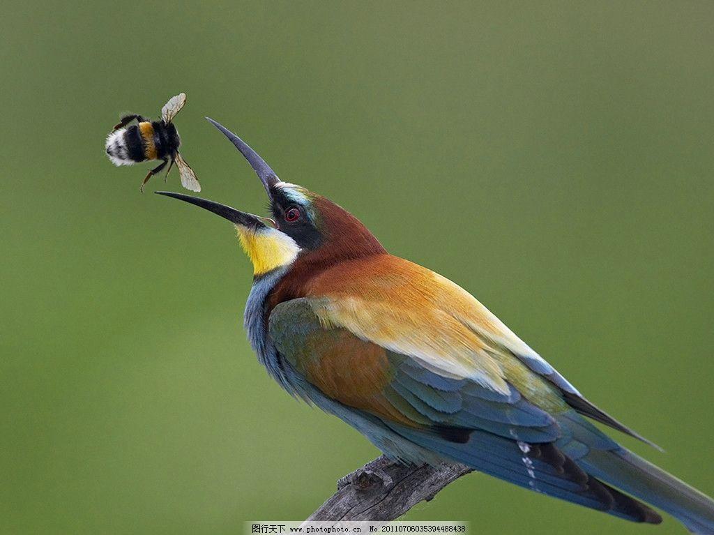 - 蜂虎类(蜂虎科):核心捕食者,视力敏锐,常栖枝伏击,垂直俯冲或迎飞啄食,能在60米外锁定蜜蜂。捕获后会在栖木上反复摔打,去除毒刺再吞食。
