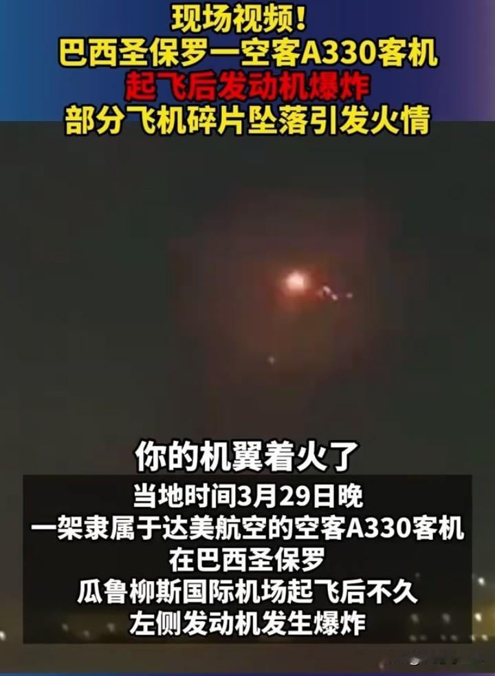 事故发生时,部分飞机碎片坠落至机场草地区域并引发火情,消防部门及时赶到控制了火势。目前涉事航班已被取消,乘客被安置在当地酒店,后续行程将重新安排,发动机爆炸的具体原因仍在调查中。此次事件虽未造成人员伤亡,但也给航空安全敲响了警钟