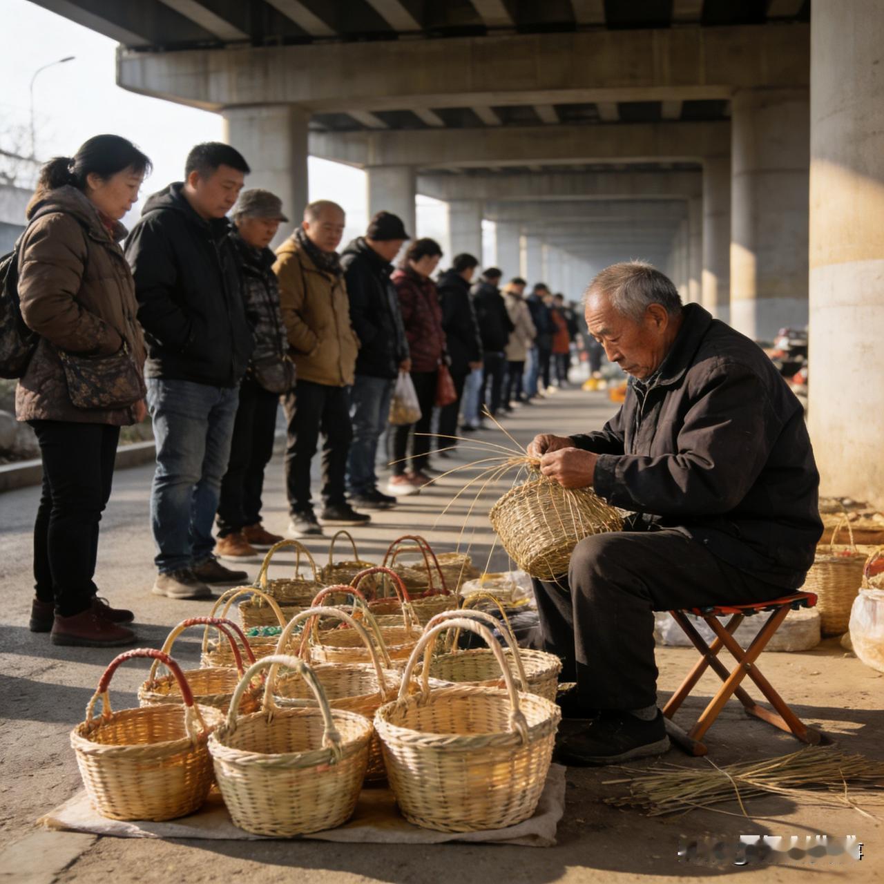 🔥 沈阳立交桥下藏着老手艺!编筐大爷一摆,全城人排队抢!