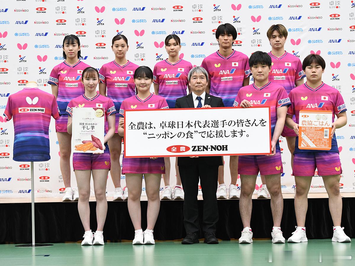 除正在参加德国乒乓球甲级联赛的篠塚大登(东都观光巴士)之外,男队4人、女队5人出席了发布会。