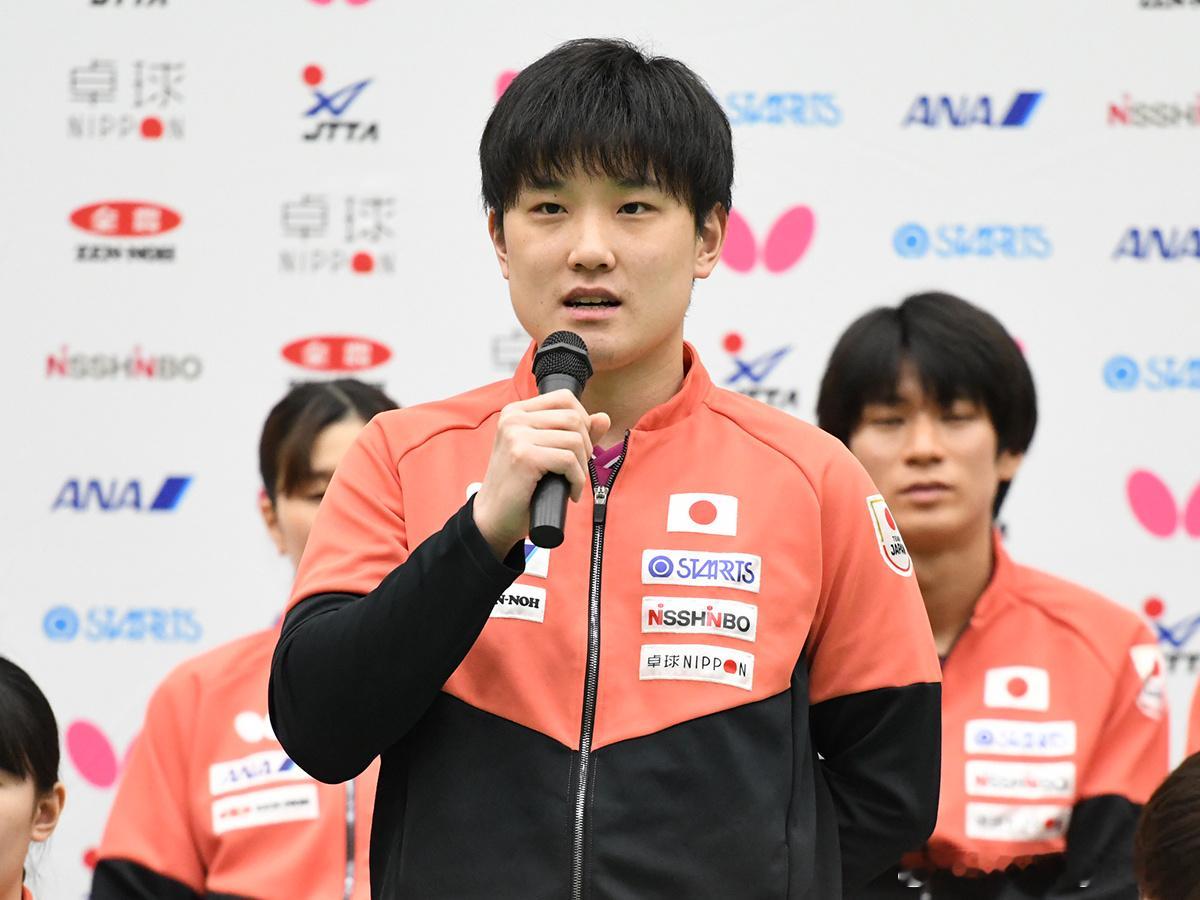 【卓球王国】出征伦敦世乒赛的日本男女队举行发布会 岸川圣也:这是“史上最强的5人