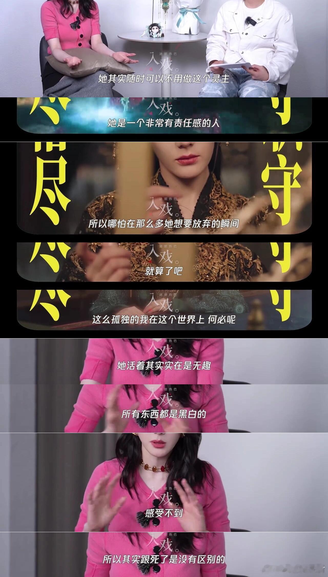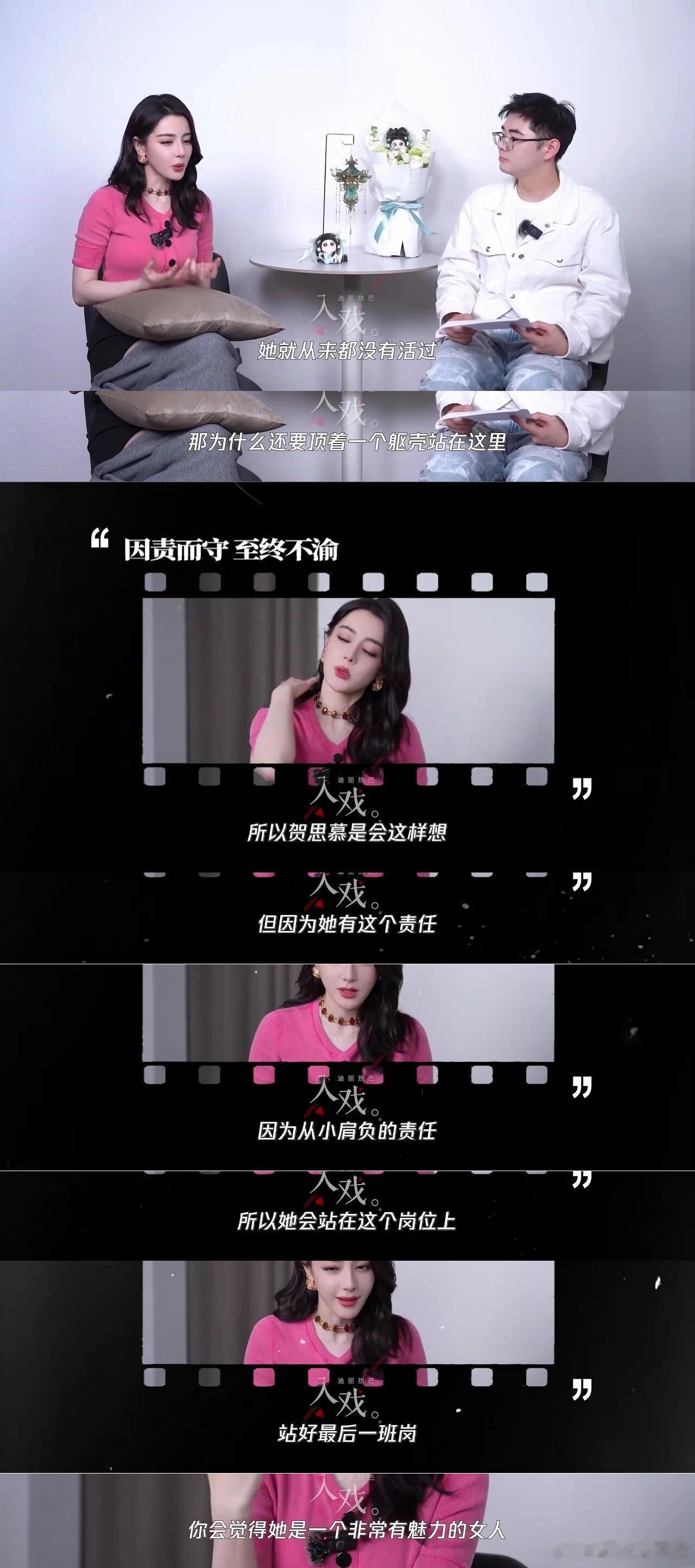 白日提灯贺思慕采访存档结论:迪丽热巴是个用脑子演戏的好演员!一个从业多年,依然在进步的好演员!要做你永远的观众!小编问:“(贺思慕)是女版的纣王吗?”众所周不知,无论是实际的历史,还是已有的影视中,对于“王”的形象大家都有一个模板,而对于“女性当王”这件事,则更是刻板到女王必须男性化,现实生活中也是,女性走到有权利的高位时,被认为应该和男的一样。可是,每一个女性本身就是女性的样子,这不需要谁来定义,也不该被定义。热巴其实在关于李长歌、乔晶晶、任安乐、安旎、邓妍、贺思慕等多个采访时都提到过,女性角色不应该被某一个印象束缚住,应该根据剧本的内在人物逻辑出发,在不同场景展现出不同的样子。简单来说,这个角色得先是个活人,而不是一个个标签。所以,我们得以在这些剧里看到不同的但都鲜活可爱的女性形象,而并非大众默认的样子。此外,好的角色和演员之间会互相哺育,角色能被呈现得更加立体,演员也体验了一遍他人的人生,获得更多人生经历,这相较于大多人只能经历自己的人生来说,是非常珍贵的。从李长歌开始,就能很明显地感受到热巴从角色上汲取的力量,成就了一个也越来越不设限,但也越来越丰富的热巴,而她也将这些力量传递给你我。所以,我时常觉得演员是个很幸福的职业。以下是采访部分:“剧本的内核和角色她想要输出的价值是什么很重要。因为现在不单单只是一些很轻松的美美的一些戏,我会想要从这个剧里获得什么,可能随着年龄的增长,对这些东西有很多要求。”“我作为演员而言,因为自己本身有了影响力,那我怎么去充分地利用这个影响力,让大家去看到很多他们看不到的,又或者是想要传达给他们的一些东西,我觉得是比较重要的。”“在塑造一个角色的时候,它其实不是片面的,我觉得人都是很多面的,所以角色也不是单一的展示。刚才说贺思慕会不会是女版的纣王,其实不是的,她也有自己的事业,段胥是出现在她生命中的一个惊喜。在她的整个生命长河中,其实都是并线在发展的。就像我自己,比如说我遇到这个角色,我也在成长。”