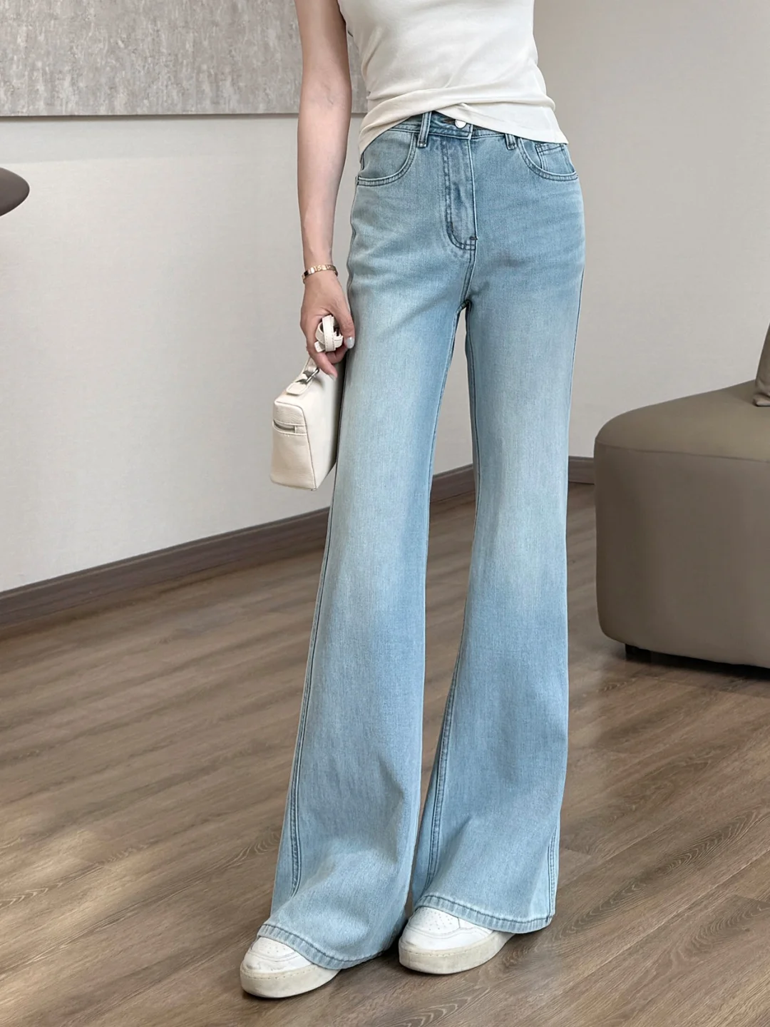 158小个子穿搭 梨形身材穿搭 夏季穿搭 微喇裤 牛仔裤穿搭 浅色牛仔裤高级感 显瘦穿搭 气质穿搭 ootd每日穿搭