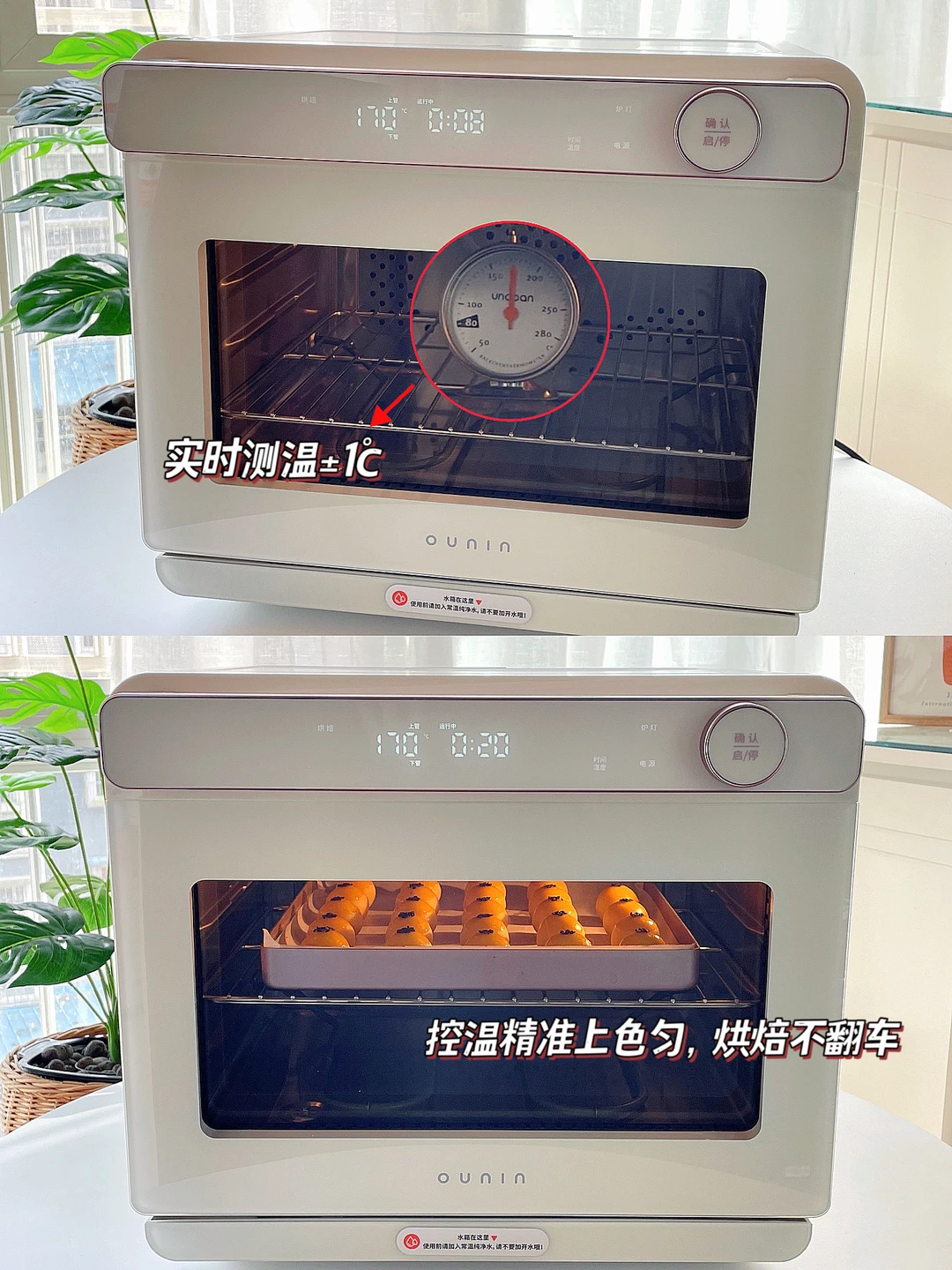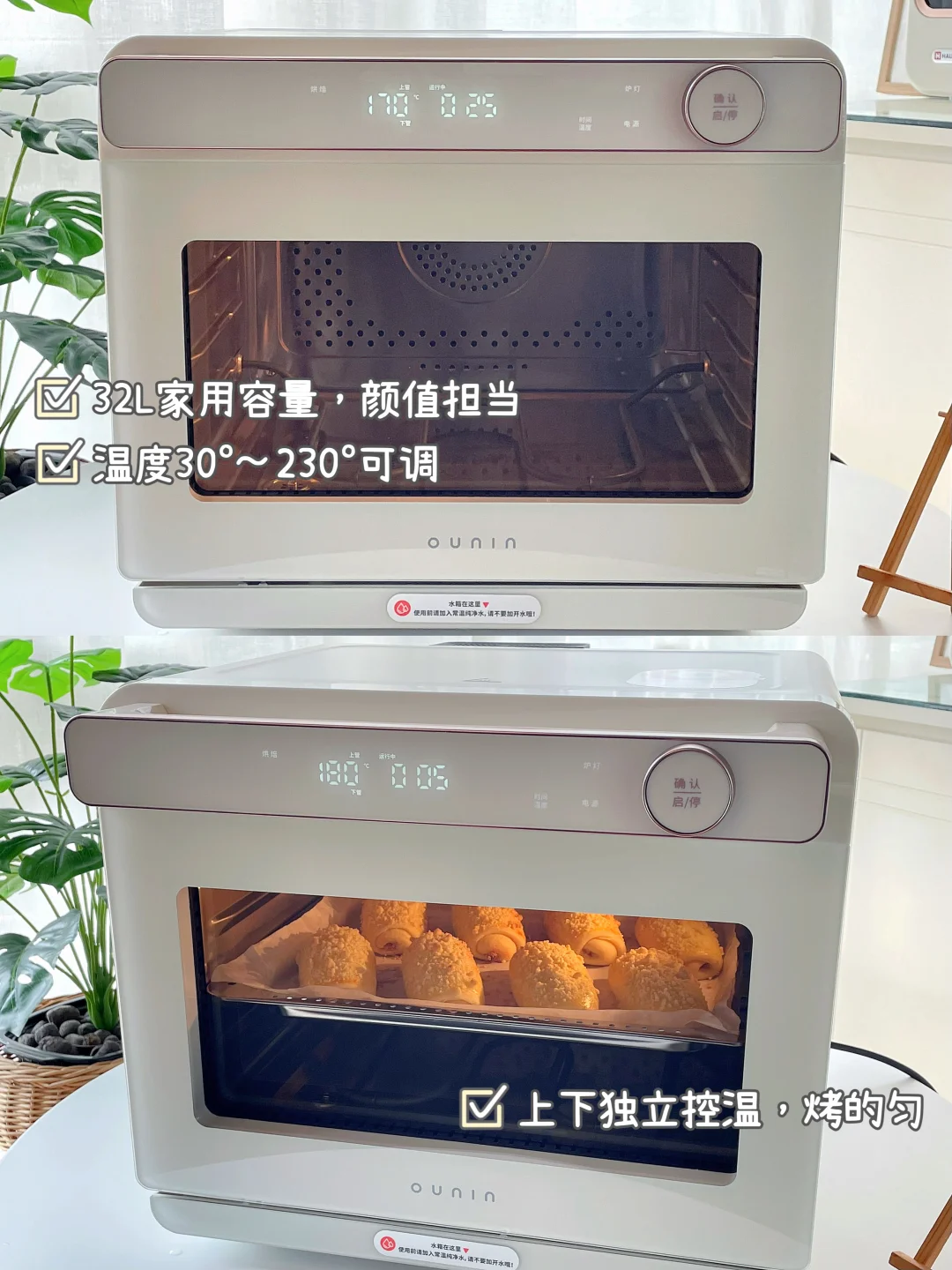 💕这台欧宁小黑马蒸烤箱,32L家用容量,颜值没得说简约又耐看。烘烤温度在30~230℃可调,触控设计➕旋钮操作,一目了然轻松驾驭;👍🏻内置双感温探头,上下独立温控,实时监测温差±1℃。上下M型烤管烘烤无死角,加上背部热风5D立体循环烘烤,温控精准上色匀,新手也能做到不翻车