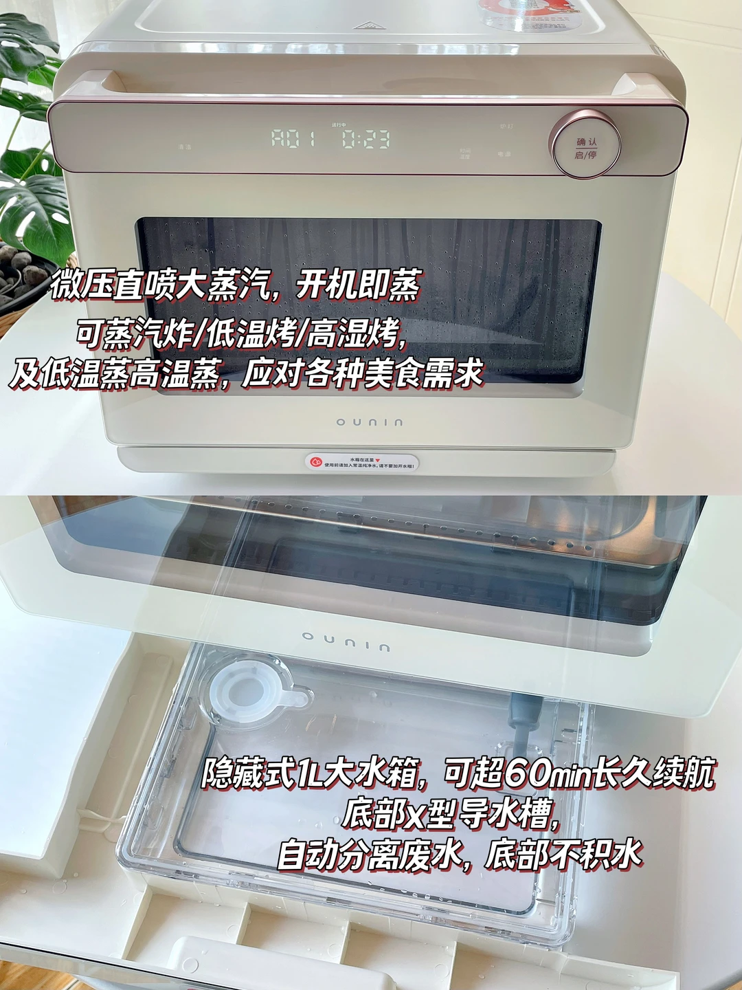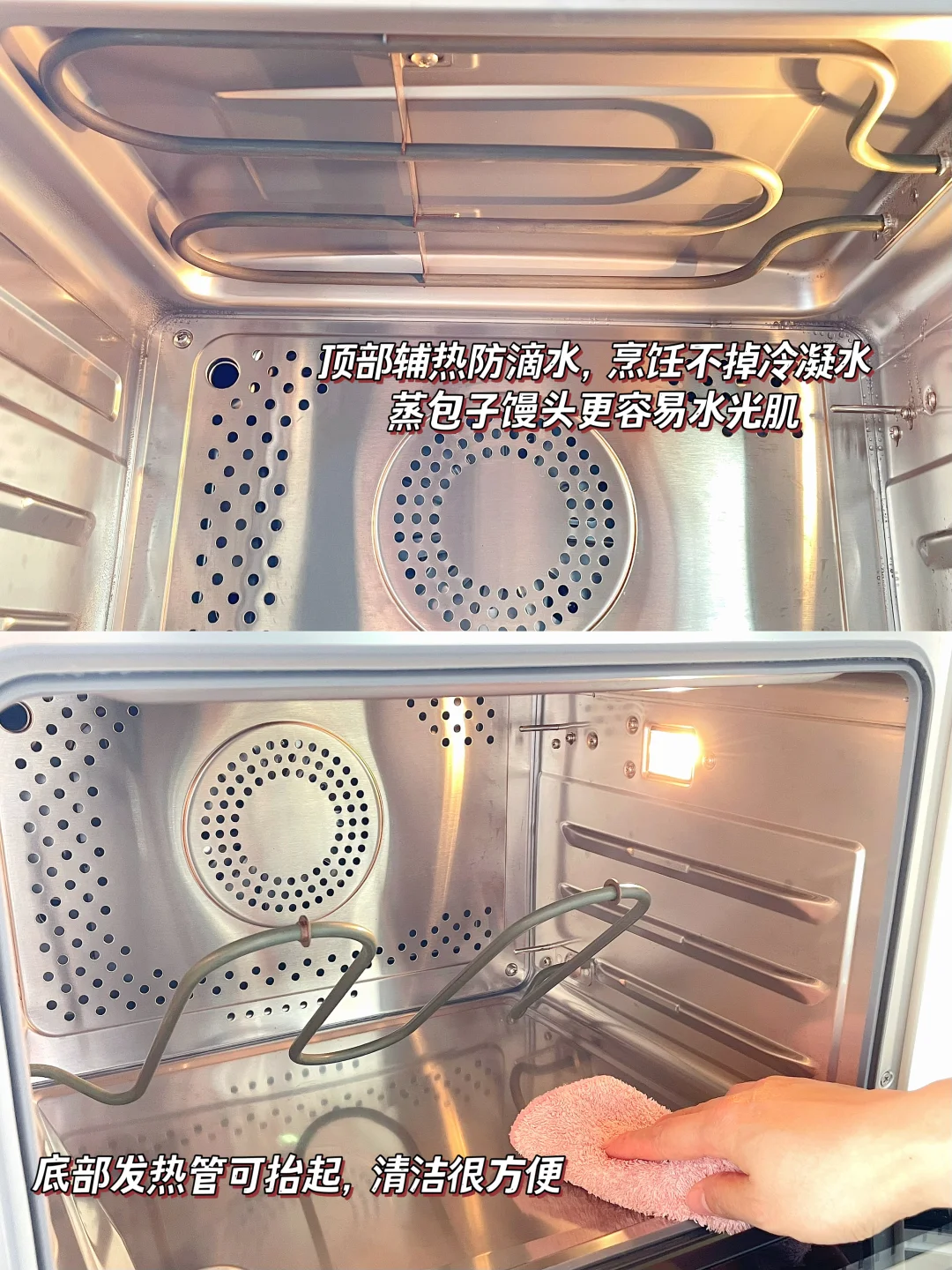 🌟蒸烤箱覆盖60~150℃宽域蒸汽,兼顾低温蒸、高温蒸,和蒸汽炸、低湿烤、高湿烤、蒸➕烤复合烹饪等,🌿微压直喷大蒸气15s快速出汽,蒸包子馒头不怕冷凝水,更容易蒸出水光肌。🔜背部风机3.0动态蒸汽循环,多层蒸也能均匀熟透更省时;蒸烤联合美味“时”半功倍,家用更省心