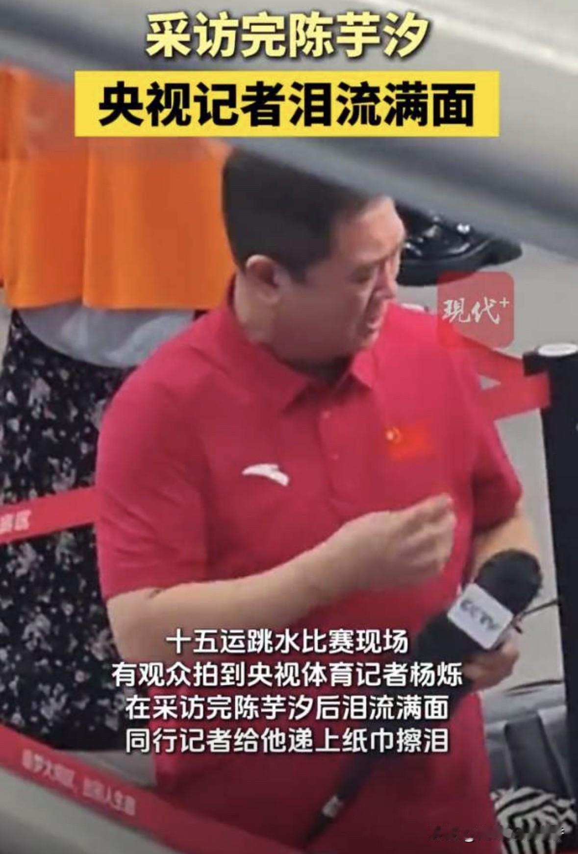 比赛结束后,镜头转向采访区,陈芋汐完成发言表达感谢,情绪尚未完全平复,而站在一旁的央视跳水记者杨烁却已经眼眶发红,他悄悄用手背擦去眼角的情绪反应,身旁同行递上纸巾,这一幕被镜头捕捉下来并迅速传播开来。