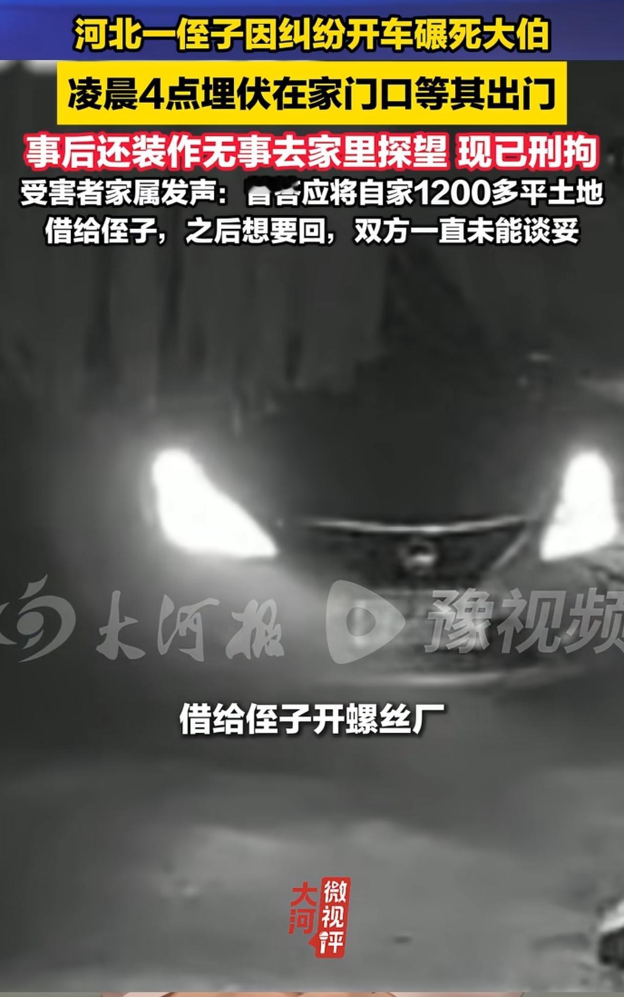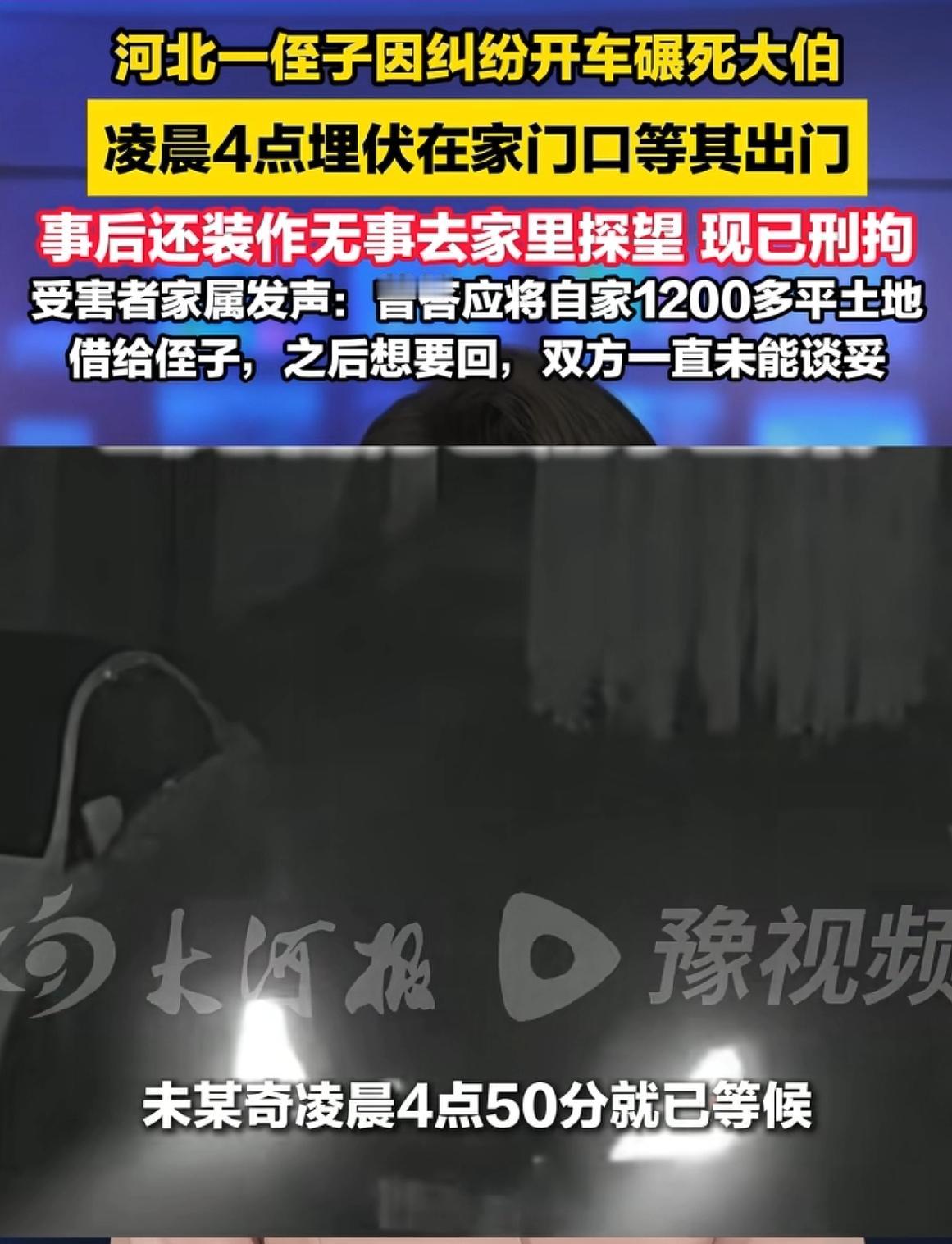 “人性泯灭!”河北,一男子凌晨4:50驾车埋伏在大伯家门口,一小时后,大伯骑电动车出门,他一脚油门冲上去撞倒大伯,再打方向盘二次碾压,致76岁大伯10根肋骨断裂而亡......