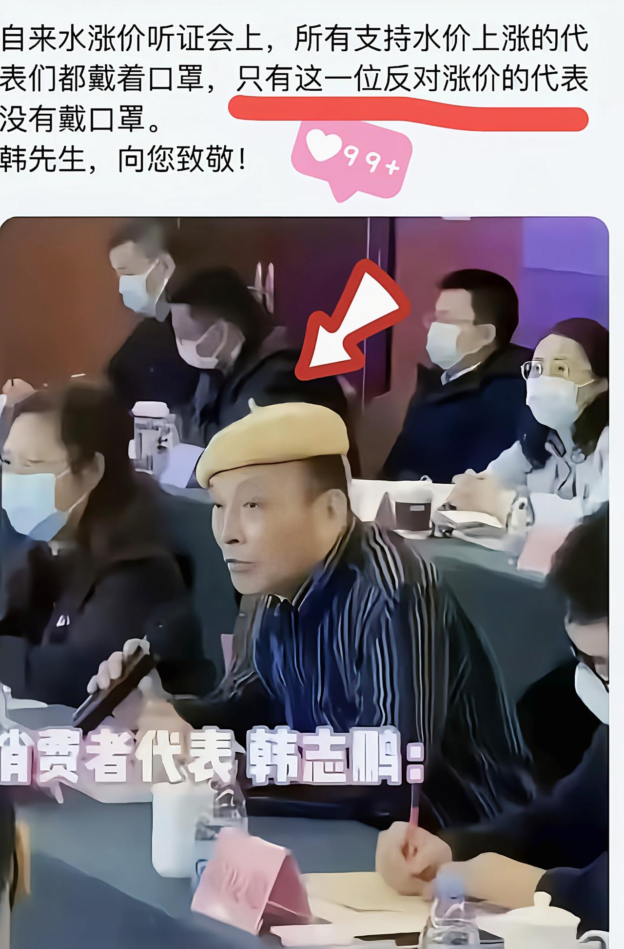 自来水涨价听证会上,只有一位反对涨价的没戴口罩,所有支持的都戴着口罩。这是心虚,还是怕会后被认出来,难道他们觉得不戴着口罩会被打吗?