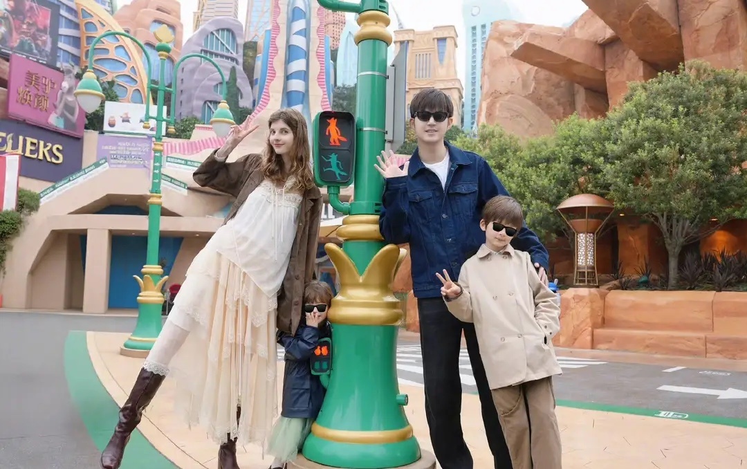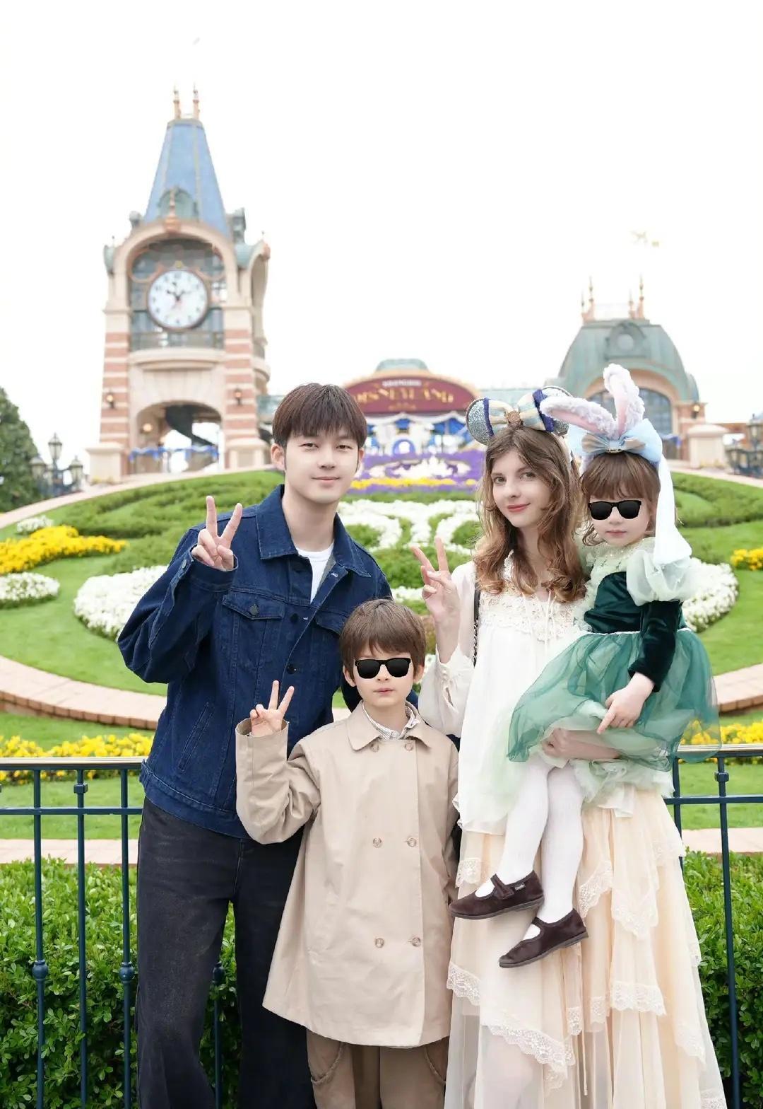 董力晒一家四口去迪士尼游玩,一双儿女颜值惊艳,老婆美的像公主!