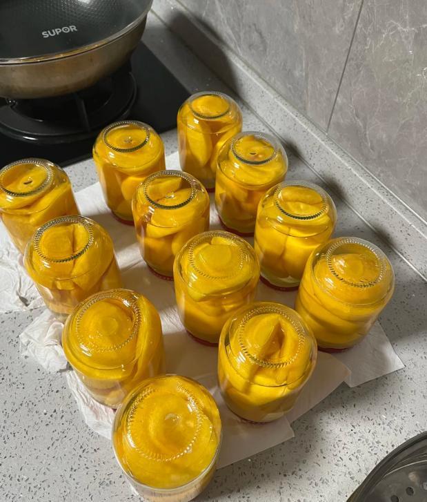 下面分享一下家庭制作罐头的方法:罐头瓶子,水果(桃子,苹果,荔枝,草莓,菠萝等)洗净,切记一定擦干水份,切小块,加冰糖(不宜过甜),加纯净水(不溢出就行),盖上盖子,稍微拧一下不要拧紧,放蒸锅,水开蒸15-20分钟即可,趁热拧紧瓶盖,把瓶子倒过来,放凉即可。自己亲手做的,既营养,又卫生。朋友们,有没做过的,可以试试。