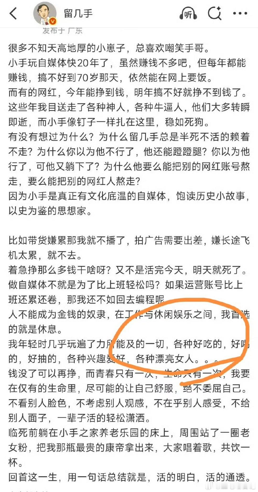 留几手回应禁言争议了,因为对张雪峰的不当言论被禁言了,刚解禁出来就开始发小作文了,看看他前面说的几个,偶然想起之前看过他发过的一篇博文,自行评判吧