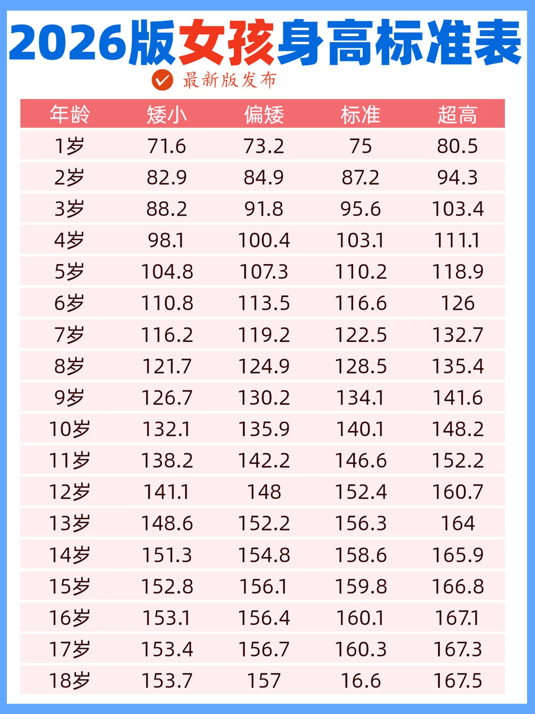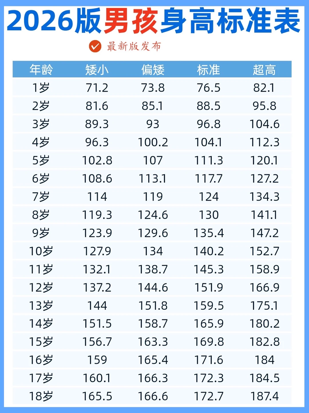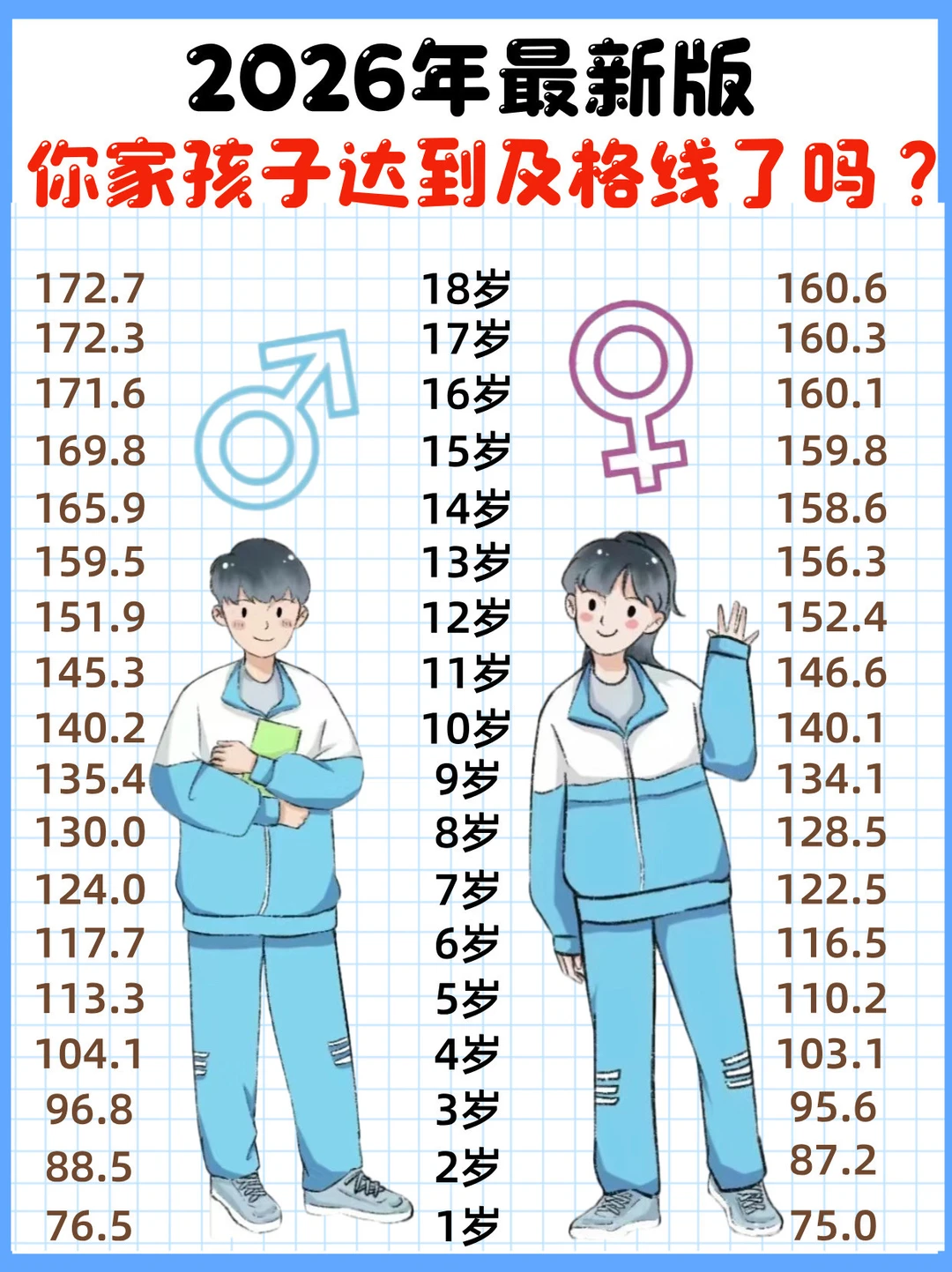 2026年最新版身高表,你家孩子达到及格线了